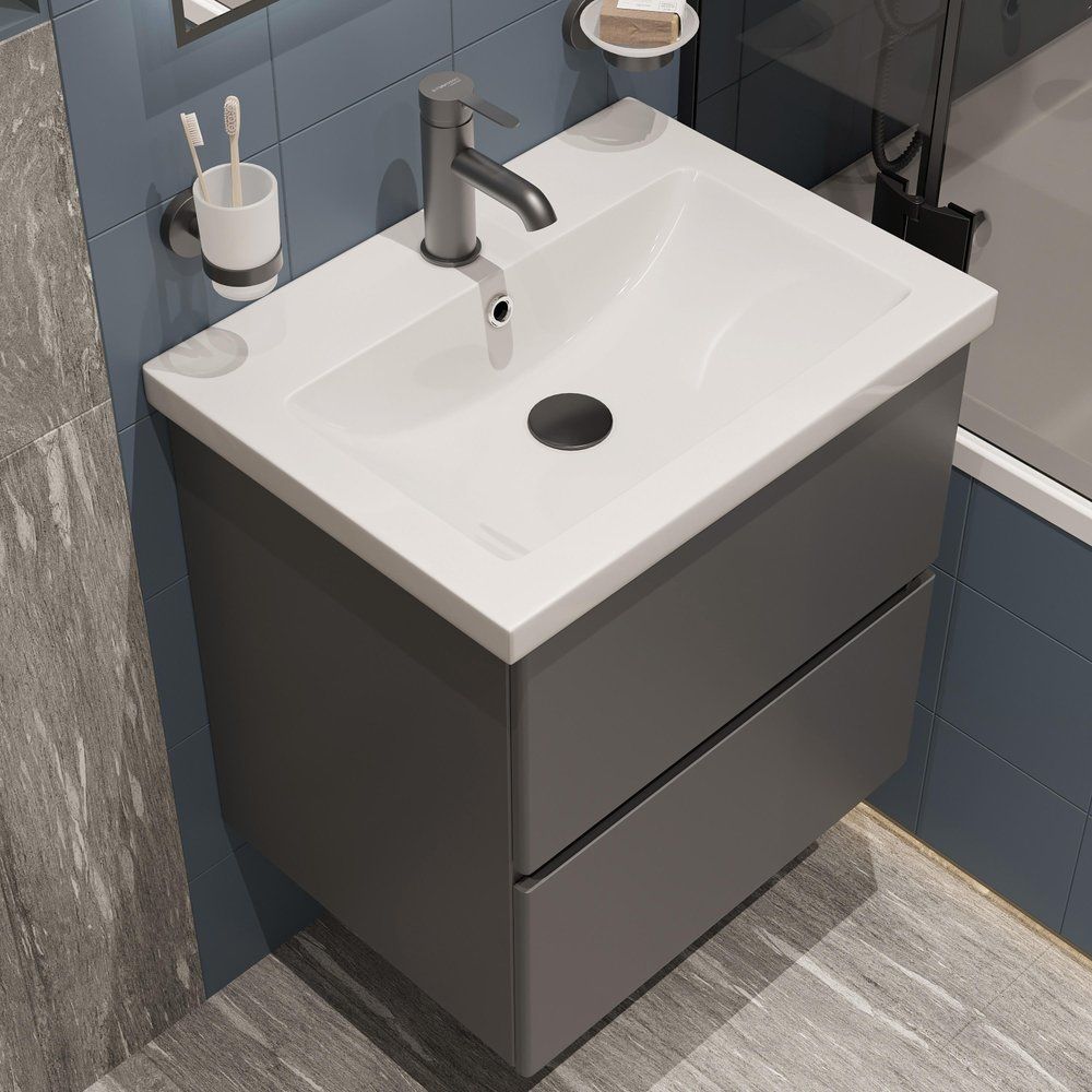 Ищете стильное и функциональное решение для вашей ванной комнаты? Тумба с раковиной STWORKI Колдинг 60 антрацит с раковиной Como 60 — это сочетание элегантного дизайна и превосходного качества. Компактные размеры и подвесная конструкция позволяют экономить пространство, а практичные ящики с доводчиком добавляют комфорта в повседневное использование. Изготовленная из прочного МДФ и покрытая специальной пленкой, эта тумба не только радует глаз, но и устойчива к влаге и износу.