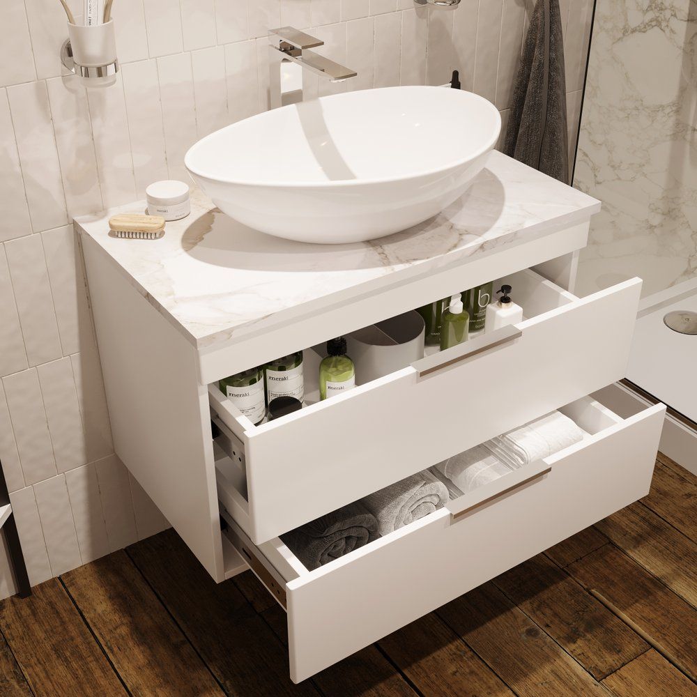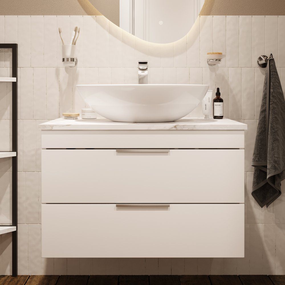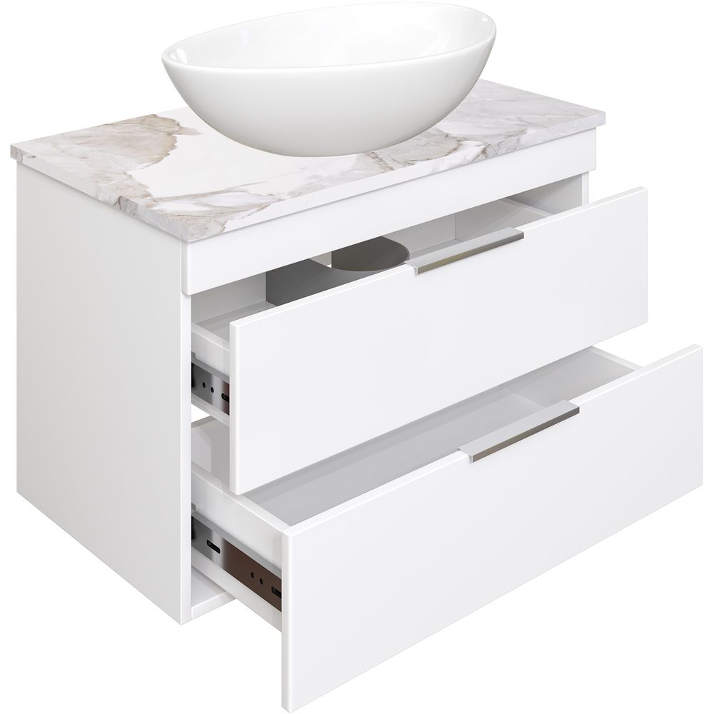 Пожалуйста, учтите, что мебель поставляется в собранном виде для удобства установки. При подборе сифона важно учитывать конструкцию и параметры тумбы, чтобы обеспечить правильную работу системы. Столешница уже имеет отверстие для установки раковины, и вам потребуется приобрести донный клапан отдельно.
