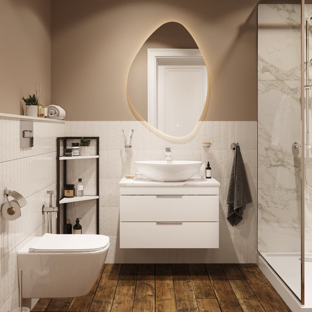 - Современный дизайн: Минималистичный стиль белого цвета с хромированной фурнитурой подходит для любой ванной комнаты.