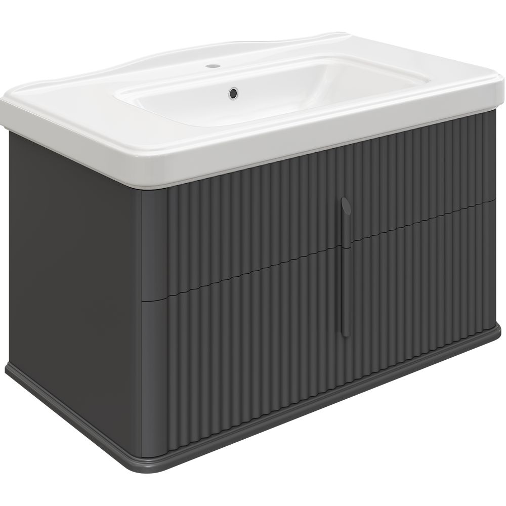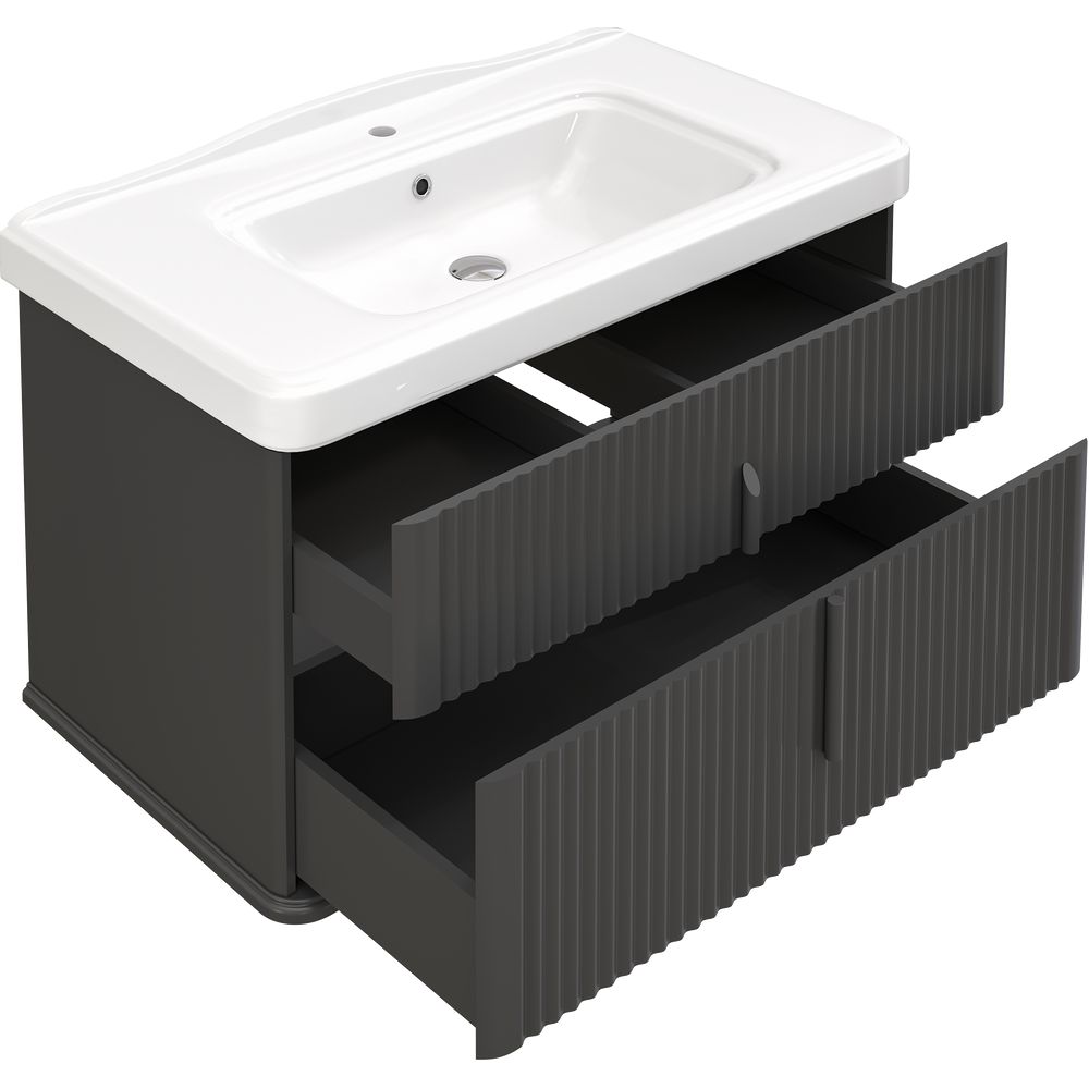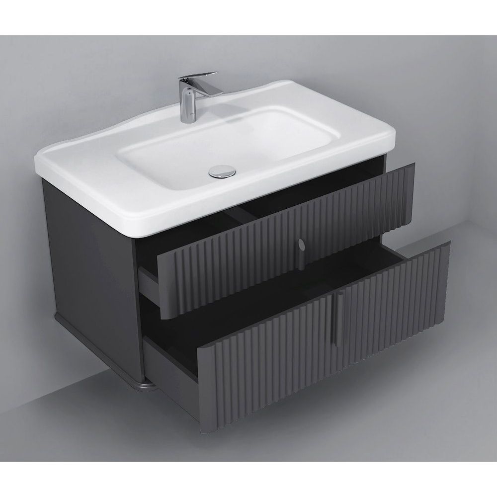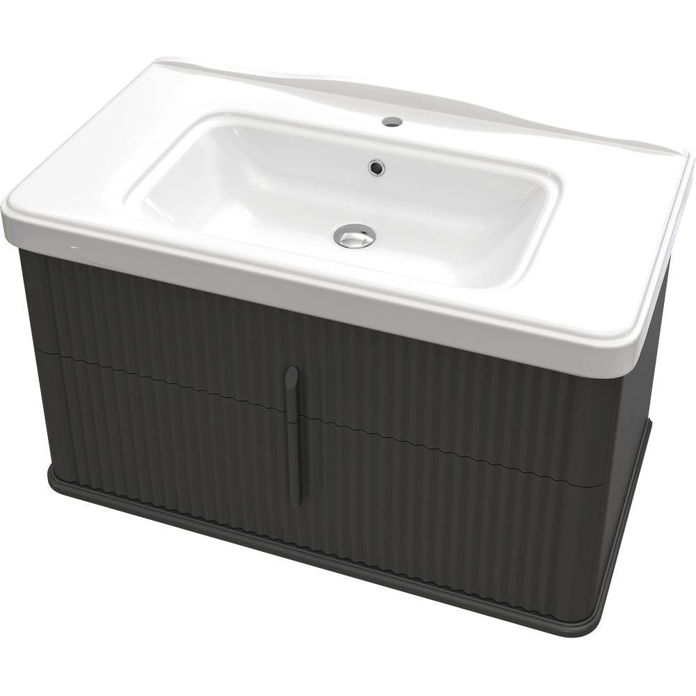 Создайте гармонию и стиль в вашей ванной комнате с подвесной тумбой с раковиной STWORKI Молде 95 в элегантном антрацитовом исполнении. Этот комплект — идеальное сочетание функциональности и изысканного дизайна. Продуманный механизм доводчика обеспечивает мягкое и бесшумное закрывание ящиков, а высококачественный МДФ и прочная пленка гарантируют долговечность и устойчивость к влаге. В комплект входит раковина из фаянса с изысканным сливом-переливом и современный сифон от Wirquin с надежной защитой от запахов.