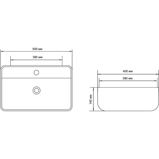 - Раковина имеет одно готовое отверстие под смеситель и подходит для сифонов диаметром 3.2 см.