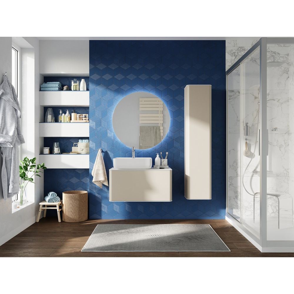 - Габариты тумбы (Ш Г В): 80x43x40 см, подходит для небольших и средних ванных комнат.