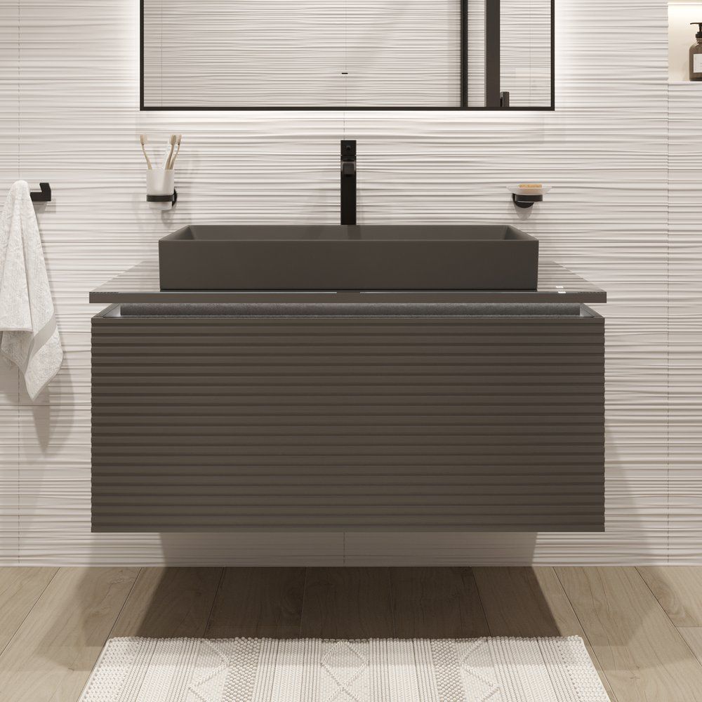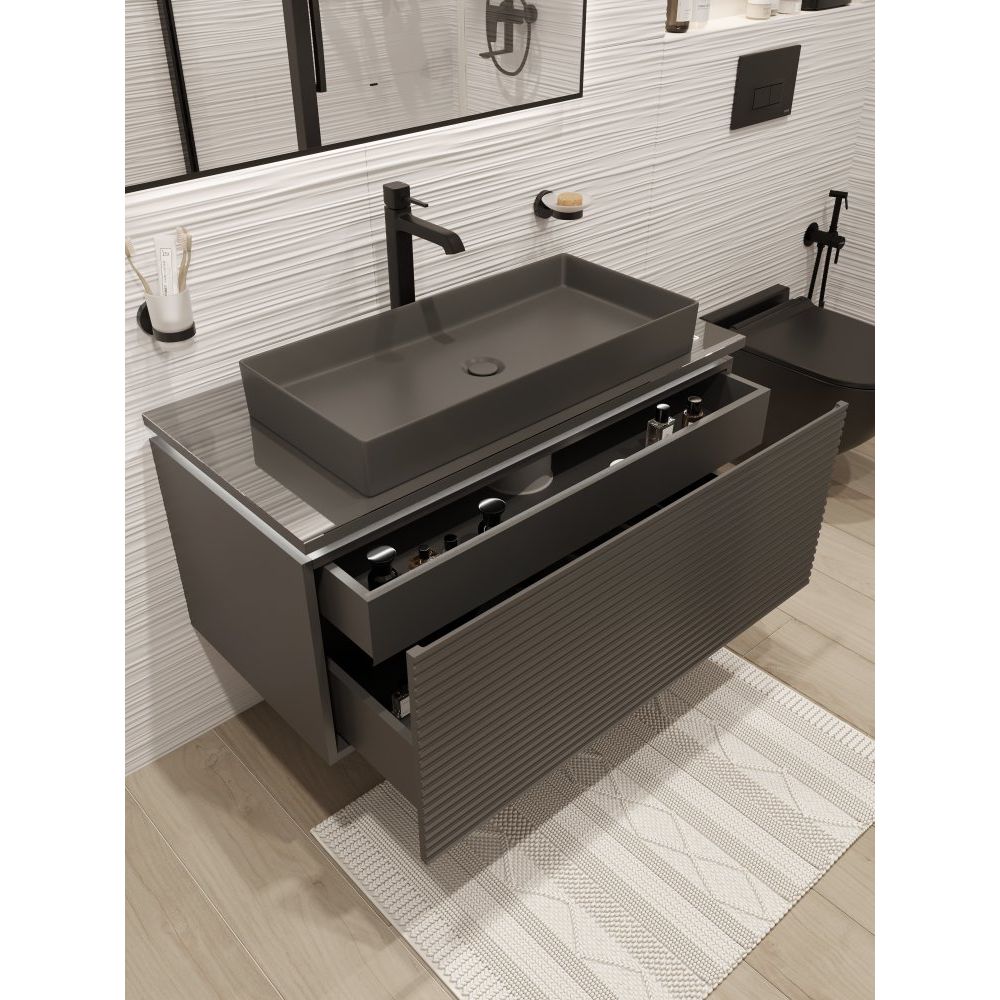 Тумба с раковиной STWORKI Рандерс, 100, в элегантном цвете антрацит, станет идеальным решением для вашей ванной комнаты. Это стильный и функциональный элемент интерьера, который воплощает в себе современный дизайн и практичность. Подключите встроенную подсветку к сети 220 вольт через надежный трансформатор и добавьте вашей ванной комнате особую атмосферу.