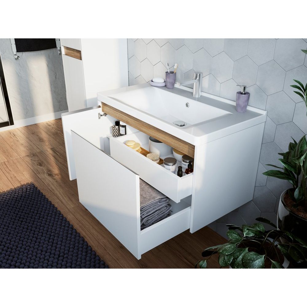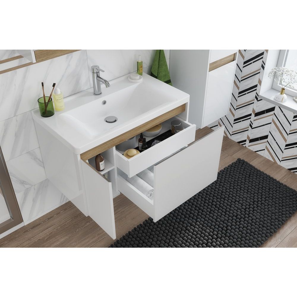 Вместительная тумба с раковиной STWORKI Стокгольм 80 создаст уют и порядок в вашей ванной комнате. Это стильное и практичное решение для современного интерьера, соединяющее вместительность и элегантность с инновационным дизайном. Экономия пространства благодаря настенному монтажу — находка для тех, кто стремится к максимальному удобству уборки. Эстетичный белый глянец поверхности, выполненный по технологии УФ-отверждения, устоит даже перед влагой и температурными переменами, сохраняя свой первоначальный вид на долгие годы.