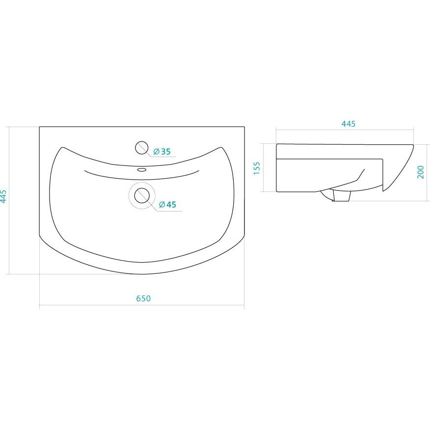 Раковина Santek Балтика 65, с габаритами 65x42,6 см, изготовлена из высококачественного фарфора. Она оснащена встроенными сливом и переливом, а также имеет одно отверстие под смеситель. Гарантия на раковину - 5 лет. Для установки необходим донный клапан и сифон диаметром 3,2 см, которые приобретаются отдельно.