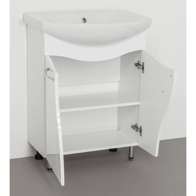 Тумба Style Line Амелия 65 исполнена в белом цвете и имеет размеры 60,5x31,8x85 см. Это напольная конструкция с доводчиками для дверок. Корпус из ламинатного ЛДСП и фасад из МДФ с пленкой обещают долговечность. Хромированные элементы фурнитуры добавляют изысканности. Внутренние полки несъемные, что обеспечивает прочность и надежность использования. Гарантия на тумбу составляет 1 год, произведена в России.