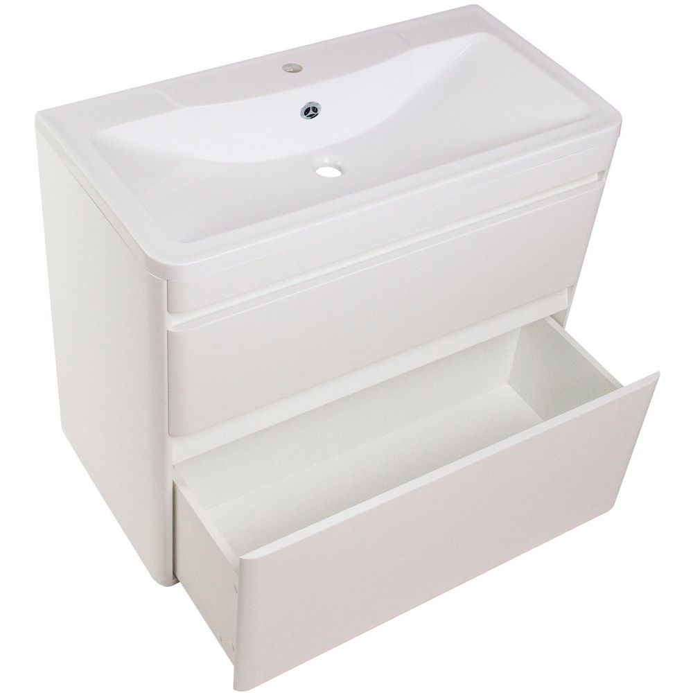 Тумба Style Line Атлантика 90 Люкс Plus имеет размеры 90x45x63 см, что делает её идеальной для ванных комнат с разнообразными габаритами. Выполненная из прочного МДФ с пленочным покрытием, эта подвесная тумба оснащена механизмом доводчика, обеспечивающим плавное закрытие ящиков. Мебельная раковина к комплекту сделана из искусственного мрамора с размерами 90x45 см и системой слив-перелив с 4-сантиметровым сифоном. Обладая одним отверстием для смесителя, раковина поставляется вместе с арматурой для слива-перелива.