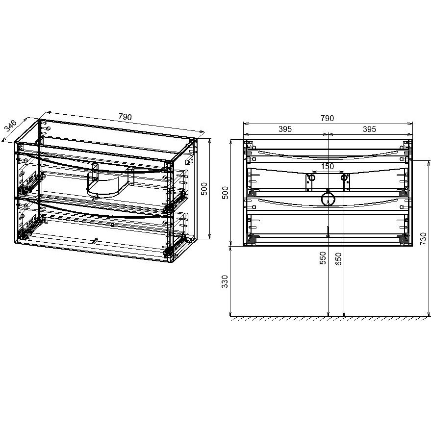- Продуманная конструкция с доводчиком для мягкого и бесшумного закрывания ящиков.
