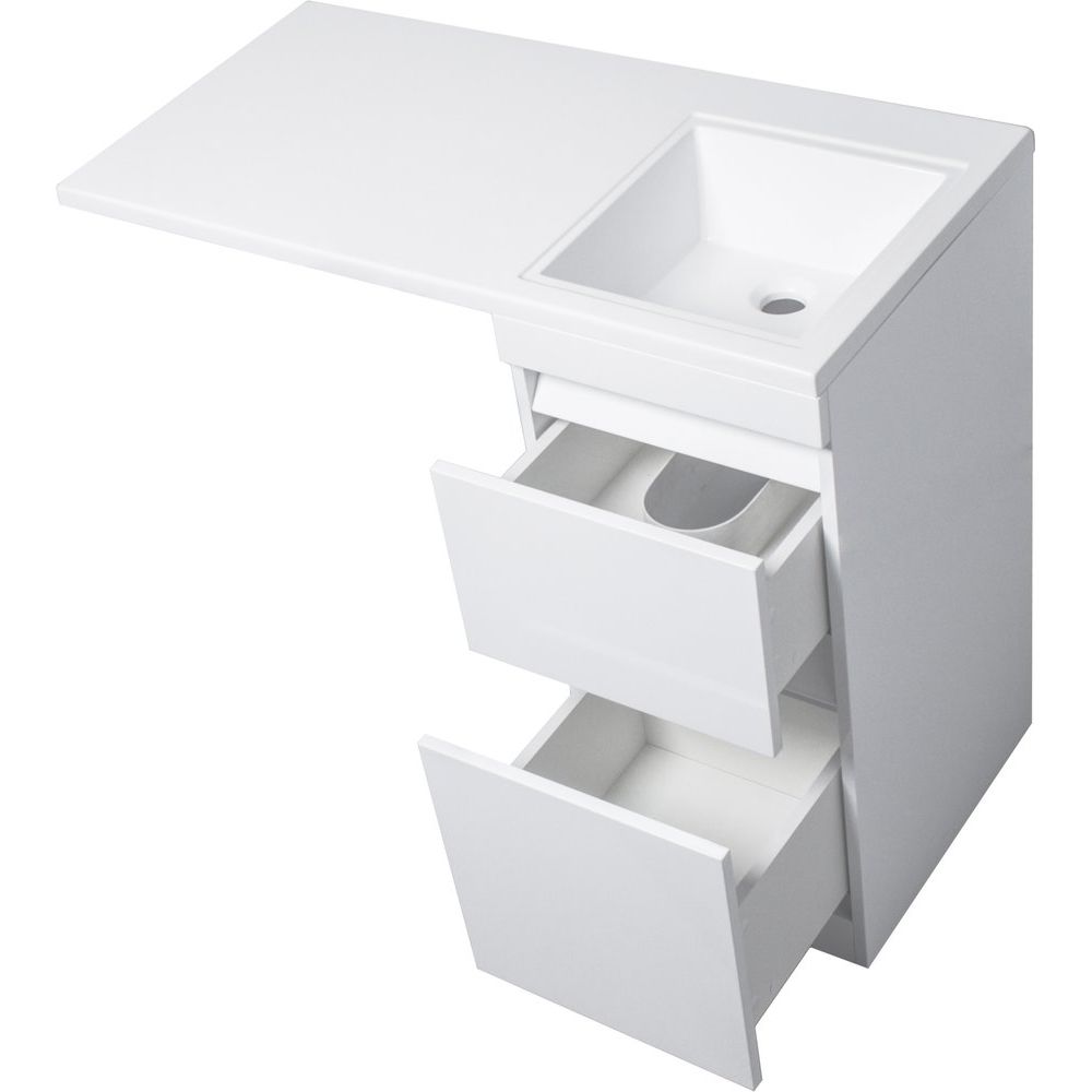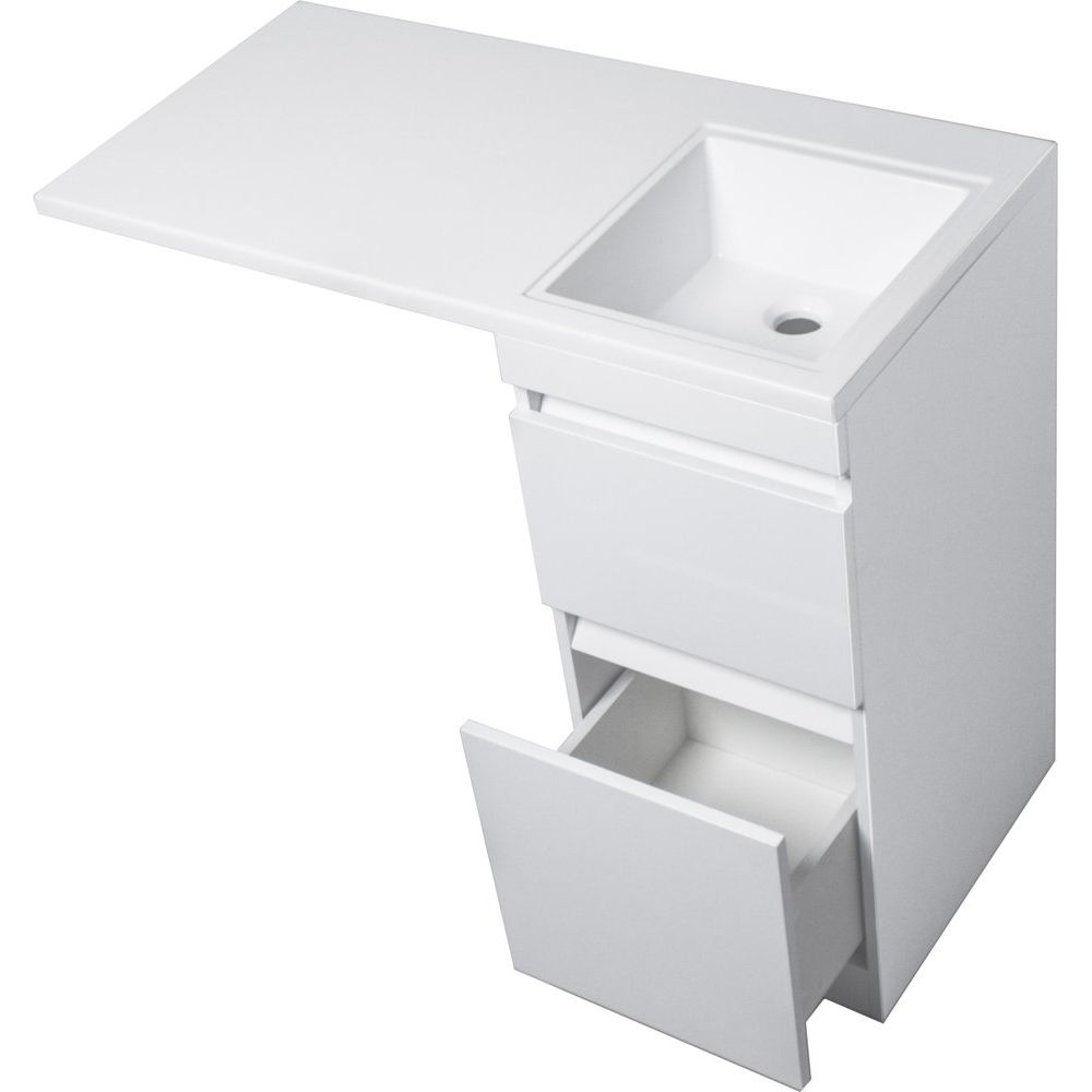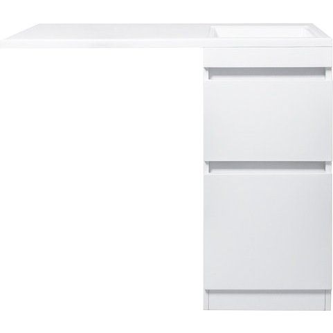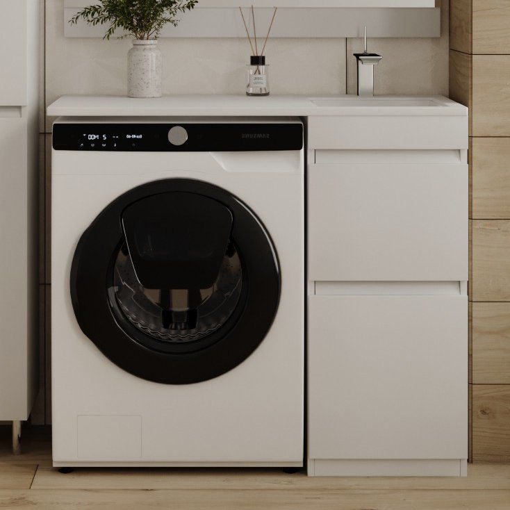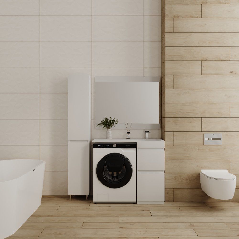 Центральное место в коллекции люксовой мебели от Style Line Даллас отведено стильной напольной тумбе с раковиной. Этот комплект объединяет в себе неповторимый функционал и современный лаконичный дизайн.Корпус и фасад предмета выполнены из влагостойкой МДФ Kronospan, ламинированной высококачественной корейской пленкой толщиной 2,8 микрона. Использование клея Henkel гарантирует долговечность и стойкость материалов. Гладкая глянцевая поверхность легко чистится при помощи обычной салфетки. Тумба включает два вместительных ящика из ЛДСП Kronospan на скрытых направляющих Boyard, что обеспечивает бесшумное закрывание. Модель также предусматривает установку стиральной машины — практичное решение для современных ванных комнат. Прочная раковина изготовлена из искусственного камня, устойчивого к агрессивным химическим веществам.