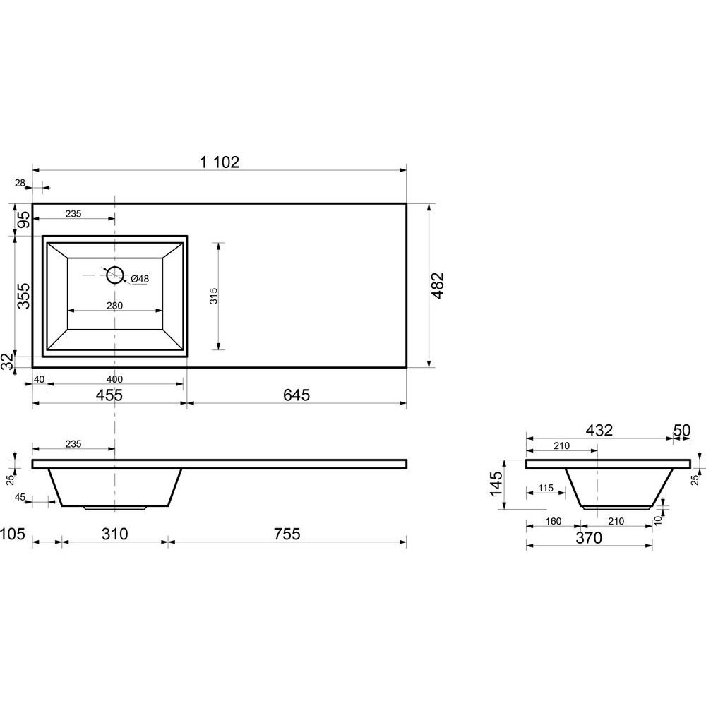 В комплекте мебельная раковина ESTETUS Даллас 110 L белая с габаритами 110,2x48,2 см. Она изготовлена из искусственного камня и оборудована одним отверстием под смеситель. Раковина разработана для сифона диаметром 3.2 см, а донный клапан нужно приобрести отдельно. Она также поставляется с кронштейном и имеет гарантию 5 лет. Российское производство.