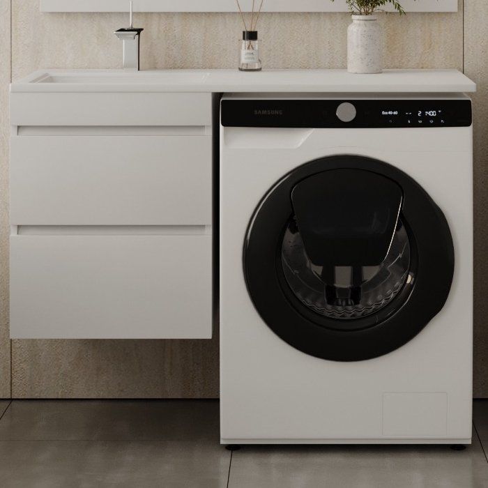 - Элегантный дизайн и возможность установки стиральной машины под столешницей.