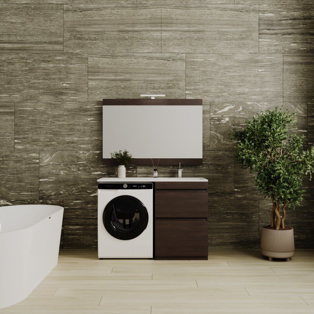 Тумба для комплекта Style Line Даллас 120 Люкс Plus выполнена в напольной конструкции с аккуратными габаритами 58x48x85,5 см. Оснащена механизмом доводчика для плавного закрывания ящиков. Корпус и фасад из влагостойкого МДФ покрыты пленкой, а сборка ящиков из ЛДСП Kronospan обеспечивает долговечность. Мебель рассчитана для установки над стиральной машиной и сопровождается гарантией на 1 год.
