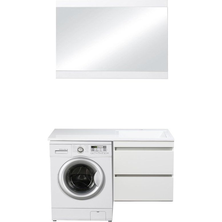Тумба для комплекта Style Line Даллас 120 Люкс Plus отличается подвесной конструкцией с габаритами 58x48x57,5 см. Она изготовлена из МДФ и покрыта белой эмалью, которая придает изделию долговечность и привлекательный внешний вид. Тумба оснащена ящиками с механизмом доводчика для мягкого закрывания и рассчитана для установки над стиральной машиной. Качество подтверждается гарантией на 1 год.