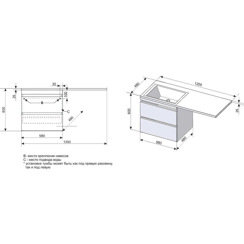 - Подвесная конструкция позволяет легко поддерживать чистоту под тумбой.