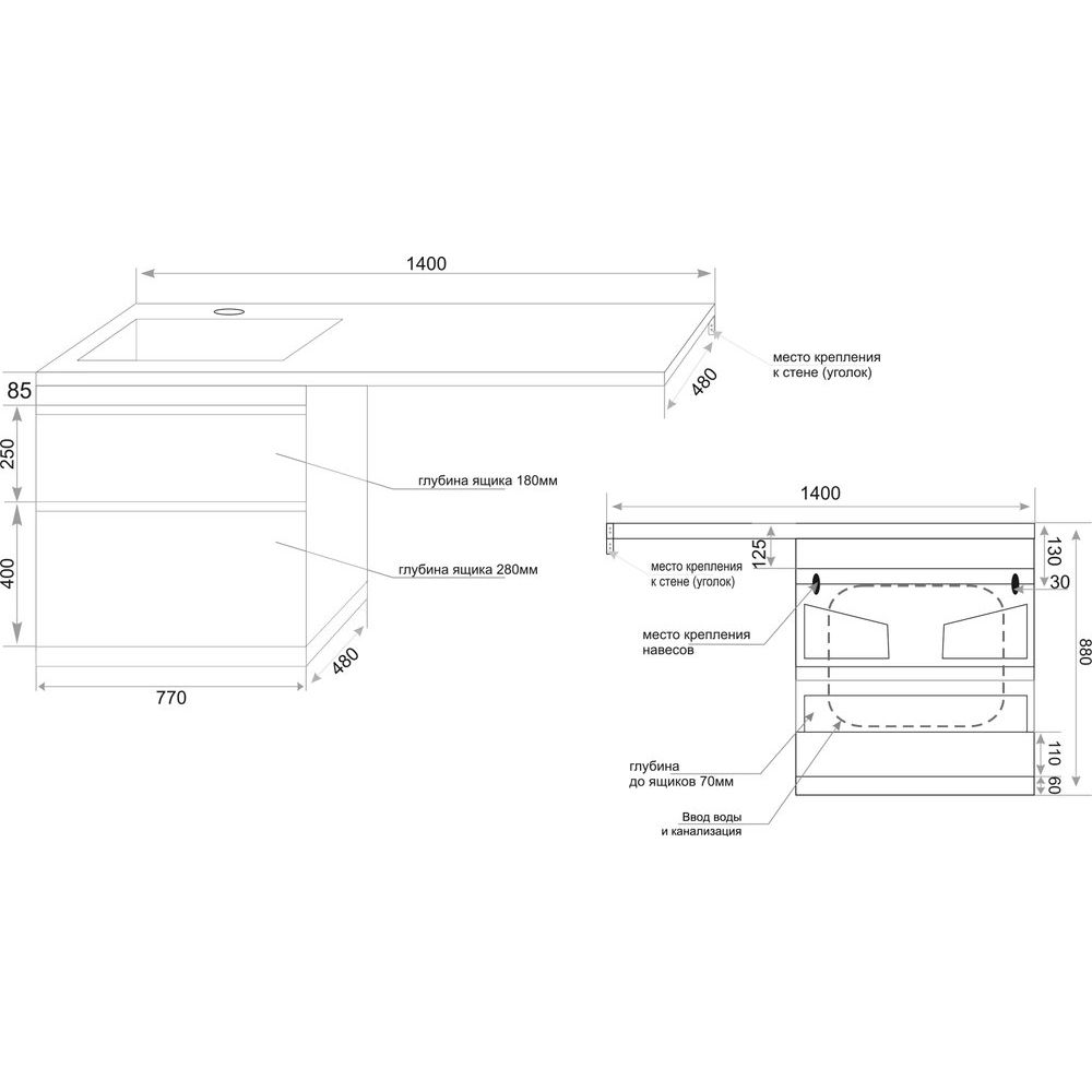 - Удобство ухода и долговечность благодаря использованию искусственного камня в раковине.