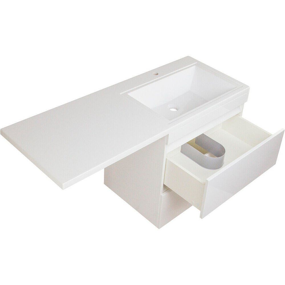 Тумба и фасад выполнены из прочного МДФ с покрытием пленкой. Габариты тумбы составляют 77x47,7x57,5 см, она спроектирована как подвесная модель с механизмом доводчика для плавного закрывания. Раковина Style Line Даллас 140 R изготовлена из искусственного мрамора, имеет габариты 140,2x48,2 см и готовое отверстие под смеситель. Она также оснащена кронштейном для надежной установки.
