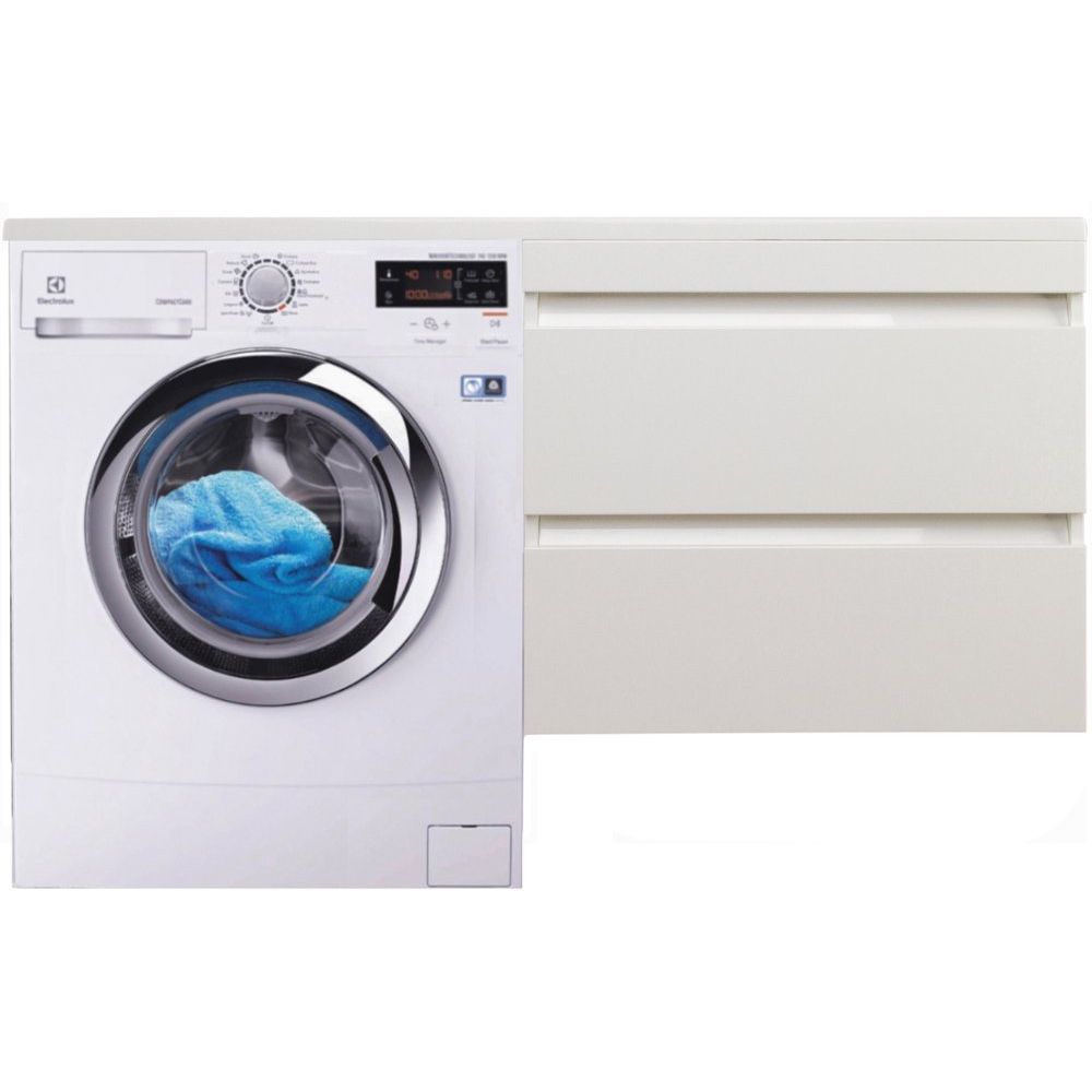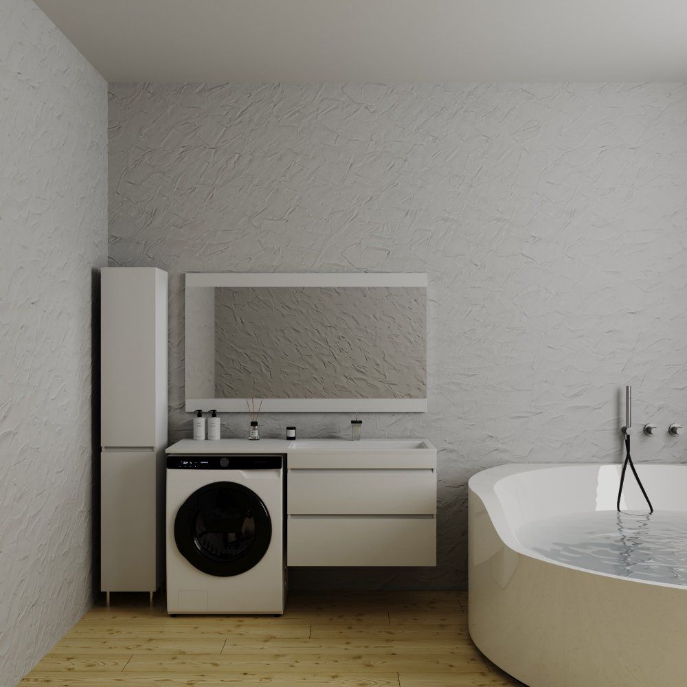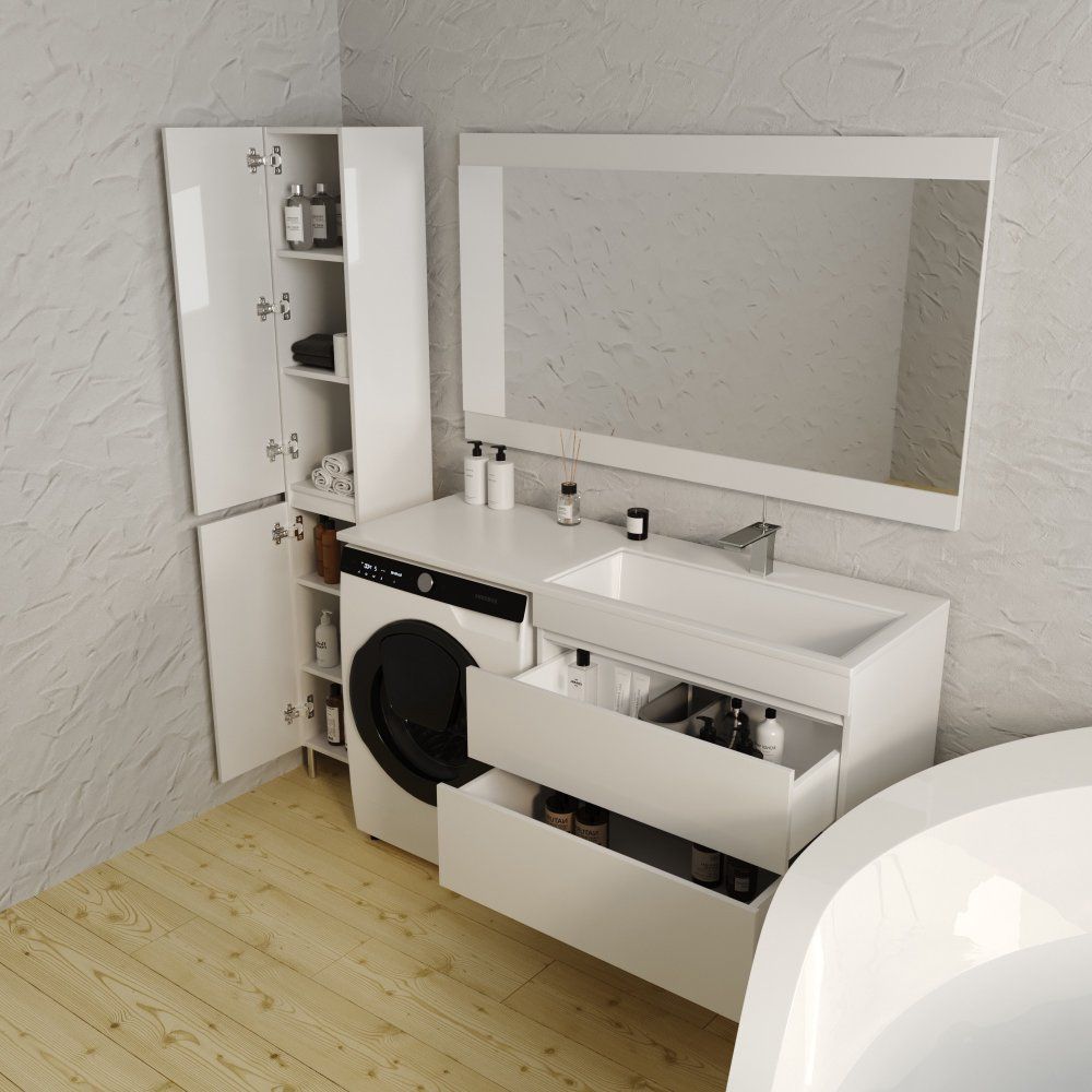 - Универсальность использования — конструкция тумбы подходит для установки над стиральной машиной, что экономит пространство.