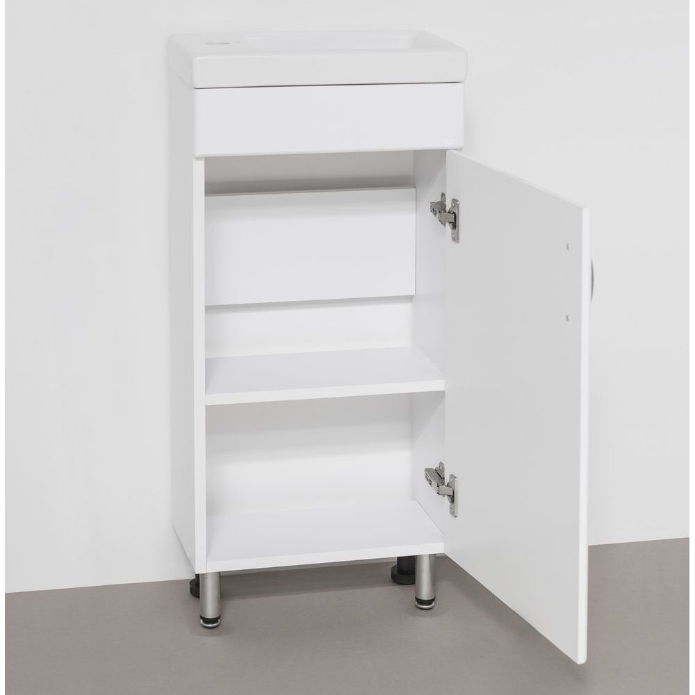 Тумба с раковиной Style Line Эко Стандарт №1 40 белая — это идеальное решение для ванной комнаты с ограниченной площадью. Компактная и стильная, она не только поможет навести порядок и оптимально распорядиться пространством, но и добавит элегантности вашему интерьеру. Выполненная из прочного ламинированного ДСП с глянцевым фасадом, тумба идеально сочетается с другими элементами вашей ванной. Хромированная фурнитура подчеркивает изысканность дизайна, а розташованные за дверцами полки позволят аккуратно разместить все необходимые принадлежности. В комплект входит прямоугольная раковина Cersanit Como, изготовленная из фарфора, что обеспечивает ее долговечность и стильный внешний вид. Оборачиваемая конструкция раковины позволяет вам выбрать расположение отверстия для смесителя — слева или справа.
