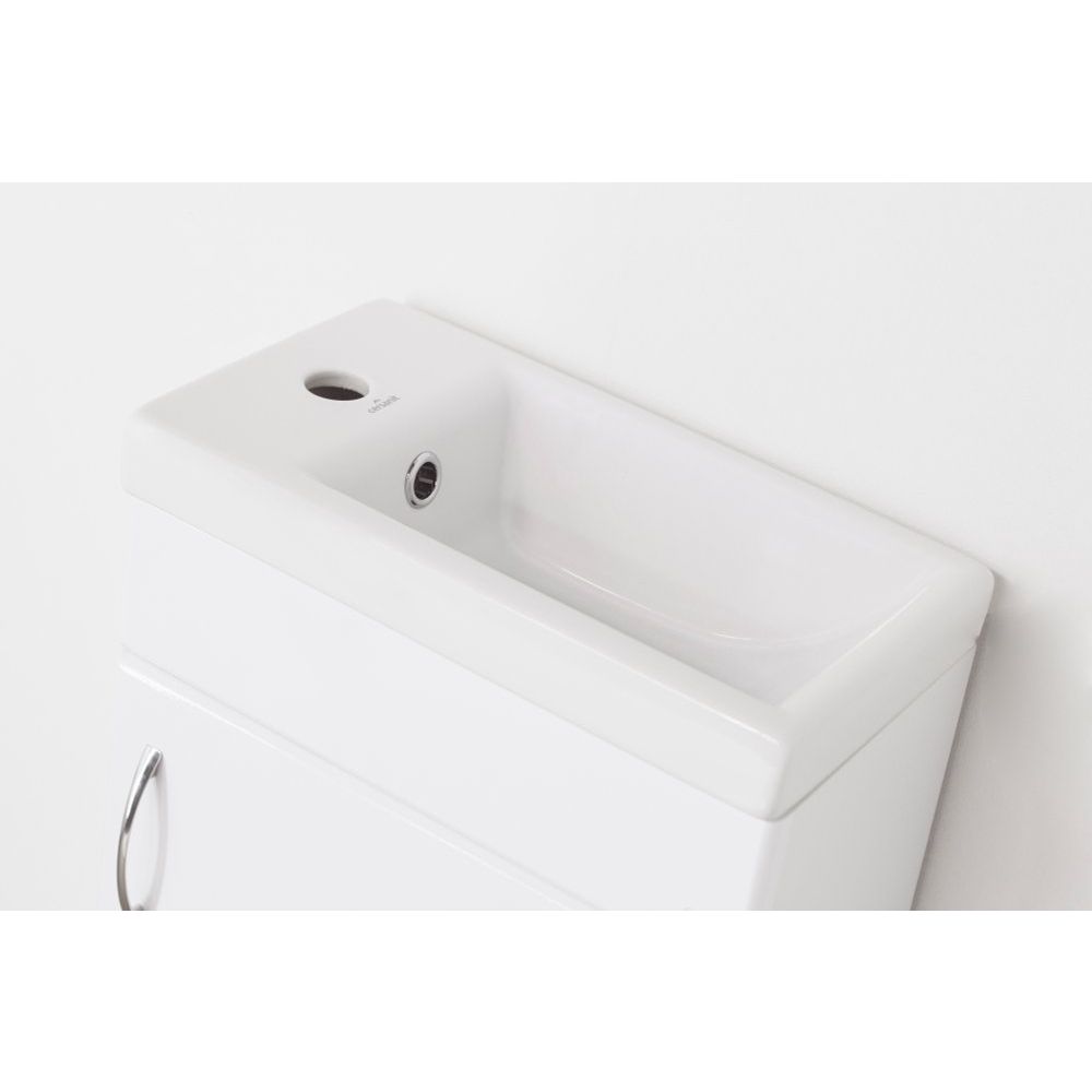 - Оборачиваемая раковина из фарфора с встроенным слив-переливом.