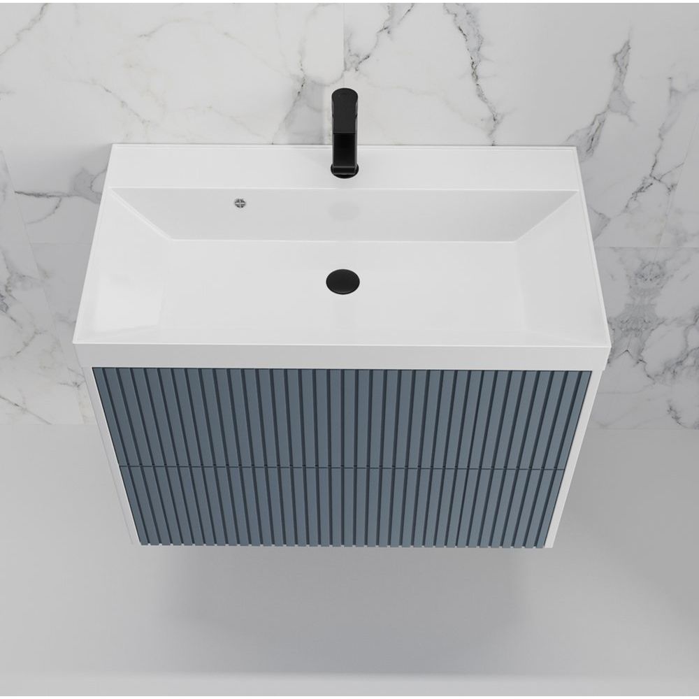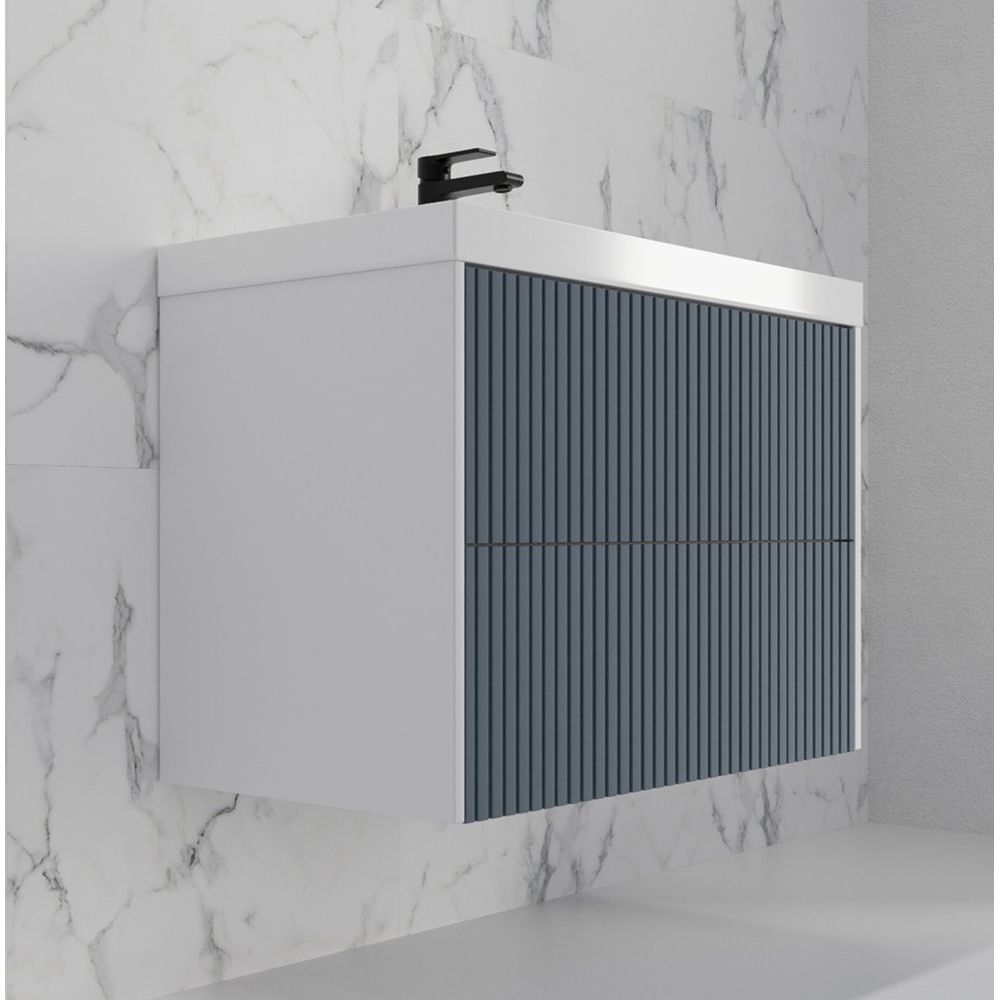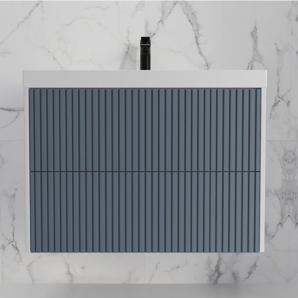 Тумба выполнена из МДФ с пленочным покрытием, что обеспечивает высокую стойкость к влаге и долговечность. Этот материал также используется для фасада. Габариты тумбы составляют 80,2x44,7x55 см, что делает её функциональной и вместительной. Подвесной монтаж добавляет лёгкости и позволяет сохранить чистоту пола.