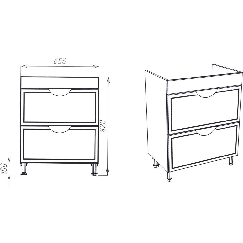 Тумба VIANT Лима 70 имеет размеры 65,6x42,5x82 см. Она оснащена двумя ящиками с плавным закрыванием, благодаря механизму доводчика. Корпус выполнен из ЛДСП и МДФ, покрытие — ламинированное. Фасад изготовлен из МДФ с пленочным покрытием, придающим изделию стильный внешний вид. Для сборки и установки сантехники требуется сифон диаметром 3.2 см, который необходимо подбирать индивидуально, учитывая конструкцию тумбы.