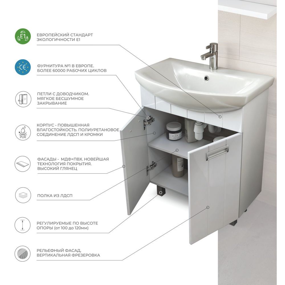 Комплект мебели поставляется в собранном виде, что упрощает установку. Обратите внимание, что в комплекте идет сифон, с которым невозможно установить донный клапан. Если вы хотите установить донный клапан, понадобится приобрести подходящий сифон отдельно. Слив-перелив также приобретается отдельно. Эти небольшие нюансы позволят вам создать максимально комфортные условия в вашей ванной комнате.