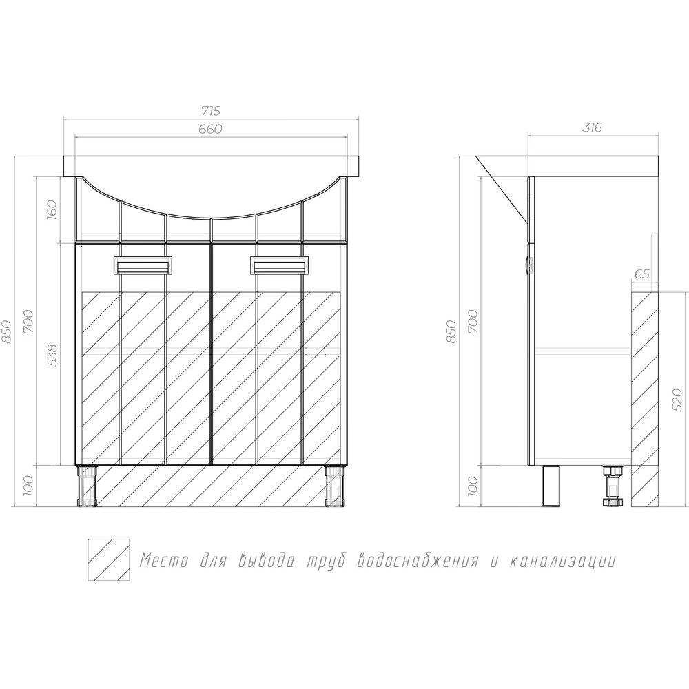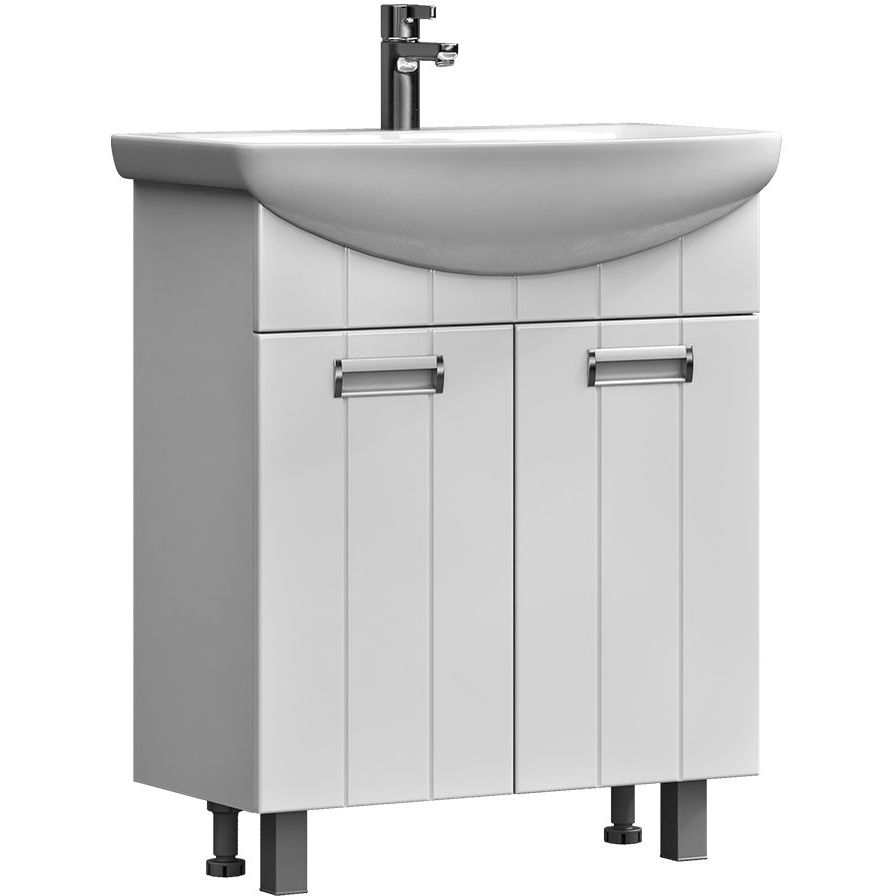 Тумба Vigo Diana 70 имеет следующие размеры: ширина 66 см, глубина 31,6 см и высота 80 см. Она напольная и изготовлена из ЛДСП с матовым ламинатным покрытием, фасад выполнен из МДФ с пленочным покрытием, фурнитура — хромированная. Тумба оснащена дверками и съемными полками, обеспечивающими удобное хранение предметов.