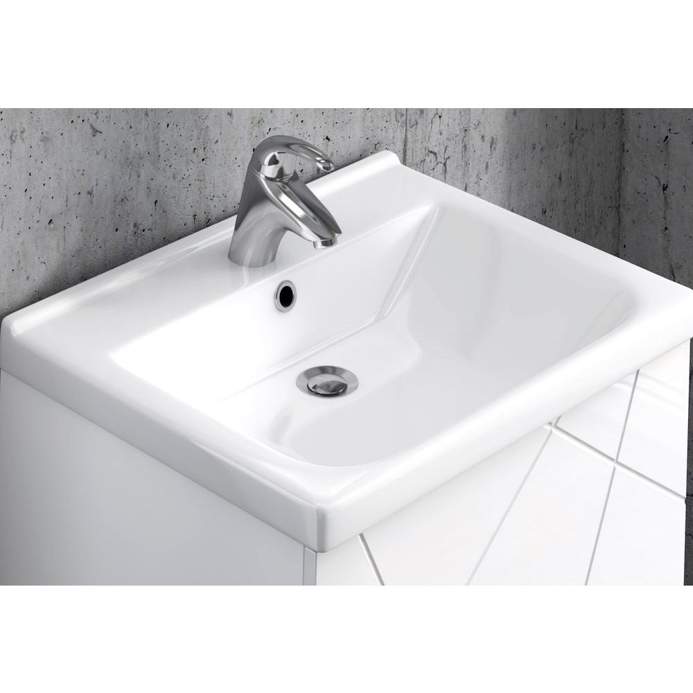 - Комплект включает качественную раковину из фарфора с интегрированным слив-переливом.