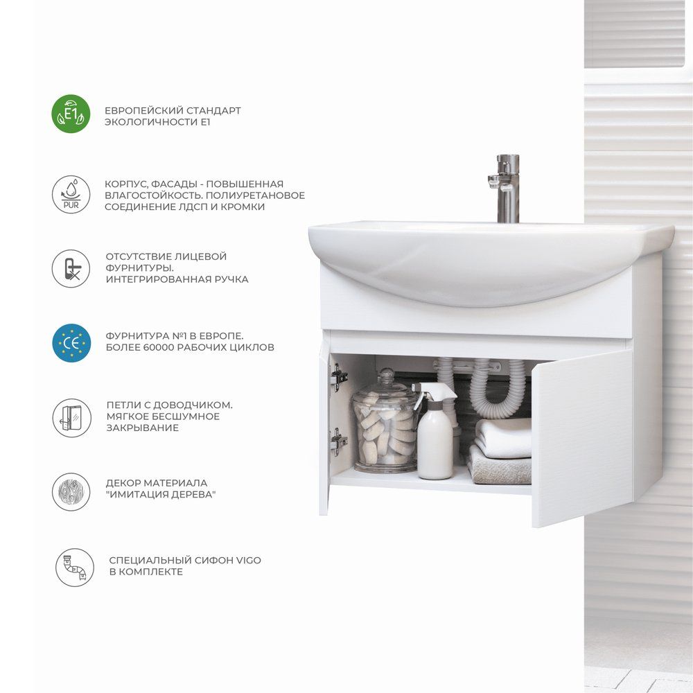 Тумба с раковиной Vigo Wing 50 белая матовая — это воплощение современного дизайна и функциональности, которое преобразит вашу ванную комнату. Стильный минимализм и изысканное матовое покрытие делают этот комплект отличным выбором для любого интерьера, обеспечивая комфорт и удобство использования.