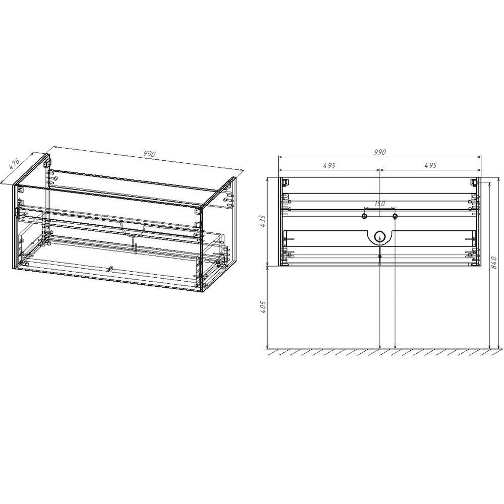 - Встроенный механизм доводчика обеспечивает тихое закрывание ящиков;