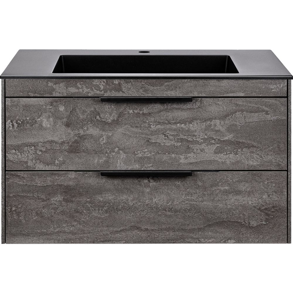 Тумба в комплекте Vincea Chiara 2D 80 подвесного типа с двумя выкатными ящиками размером 79,2x47,6x47,5 см, изготовлена из ЛДСП и покрыта защитным ламинатом. Она оснащена механизмом доводчика, который обеспечивает плавное закрывание дверей и ящиков. Черная раковина, размером 80x48 см, изготовлена из искусственного камня, предназначена для сифона диаметром 3.2 см и имеет одно отверстие для смесителя. Особое внимание уделено фурнитуре — стильные черные элементы дополняют общий облик. На раковину предоставляется гарантия 5 лет, на тумбу — 3 года. Производство Италия.
