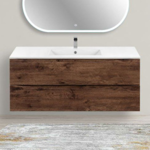 - Тумба Vincea Mia с габаритами 120,9х46х50 см выполнена в цвете темный дуб, оснащена подвесной конструкцией и механизмом доводчика для плавного закрывания.