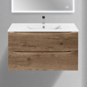 Тумба с габаритами 90,1x39,4x50 см выполнена из МДФ и отделана пленкой, фасад изготовлен из ЛДСП с ламинатным покрытием, оснащена двумя выдвижными ящиками с механизмом soft close. Раковина размером 91x39,5 см выполнена из фарфора и имеет одно отверстие для смесителя. Обязательно приобретение донного клапана отдельно. Комплект оснащён встроенным сливом-переливом и подходит для сифона диаметром 3.2 см.