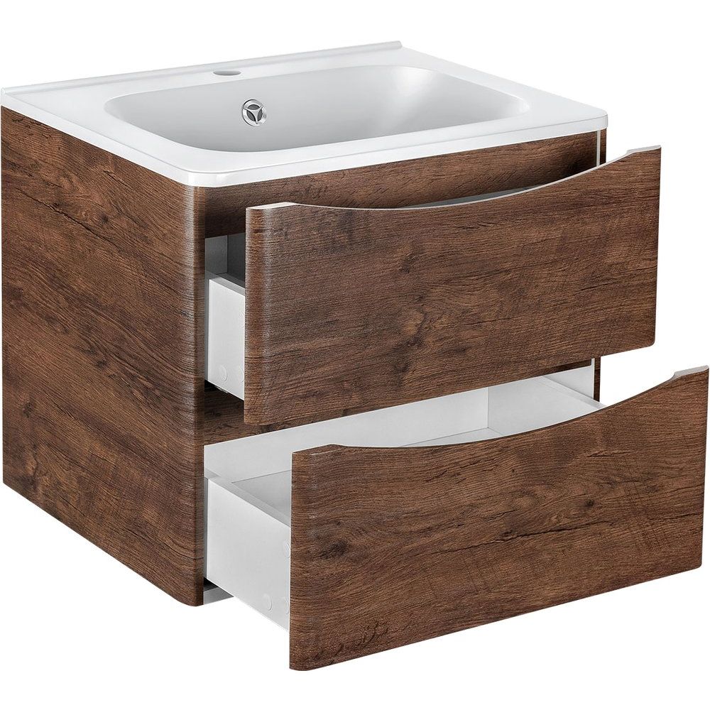 Тумба Vincea Paola 60 см выполнена в элегантном темном дубе, подвесная с размерами 58,9x46,6x50 см. Оснащена механизмом доводчика для плавного закрывания и выполнена из ЛДСП и МДФ с пленочным покрытием. Имеет удобные ящики для хранения. Гарантия на тумбу составляет 3 года.