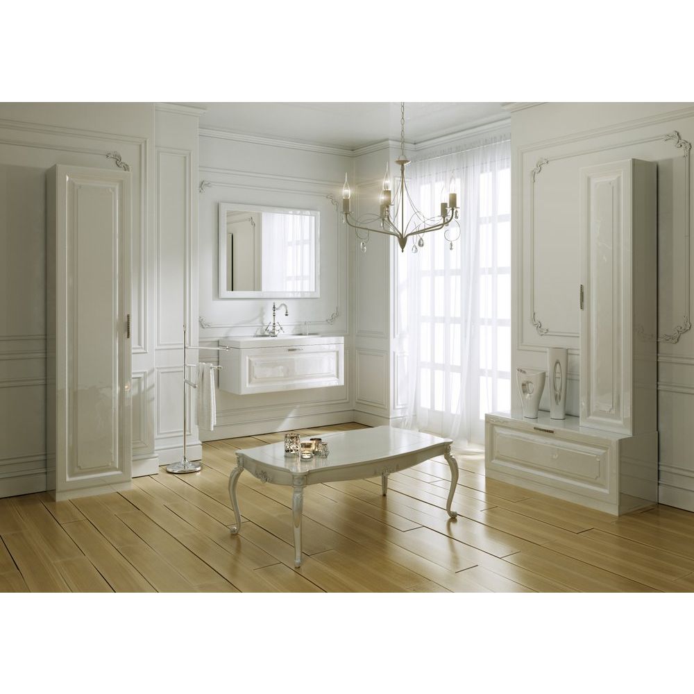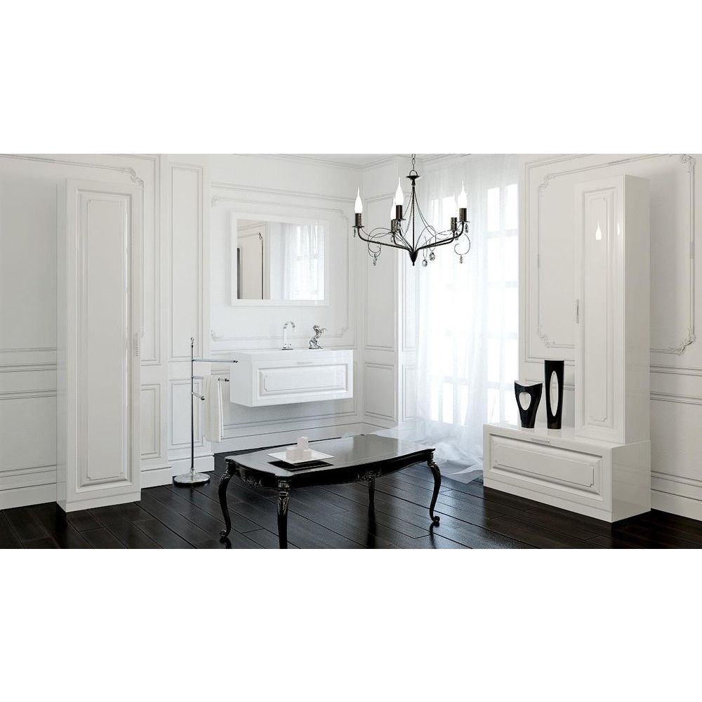 Тумба Aqwella 5 stars Империя Н8 в белом глянце — это шикарное решение для тех, кто ценит эстетику и функциональность в ванной комнате. Ее классический стиль и элегантный дизайн подчеркнут утонченный вкус владельца и органично впишутся в интерьер. Выдвижной ящик с системой плавного закрывания позволяет наслаждаться полной тишиной и комфортом при эксплуатации. Среди уникальных деталей стоит отметить декоративную отделку внутренней части под ткань и изящную ручку с имитацией страз, которые придают изделию особую изысканность.