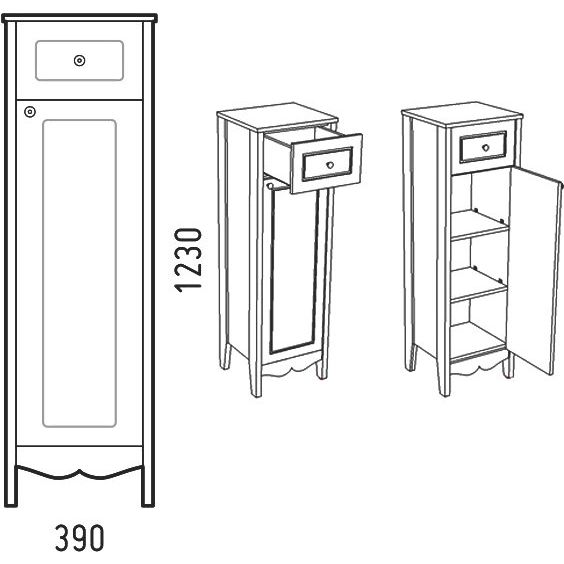 Тумба Corozo Блюз имеет размеры 39x39x123 см и предназначена для напольной установки. Она изготовлена из прочного МДФ, покрытого эмалью, что добавляет устойчивости к внешним воздействиям и легкости в уходе. Фурнитура выполнена в белом цвете, гармонично сочетающемся с общим дизайном. Встроенные выдвижные ящики и дверки обеспечивают дополнительное удобство в хранении необходимых предметов. Производитель предоставляет гарантию на 1 год, что подтверждает уверенность в качестве своей продукции.