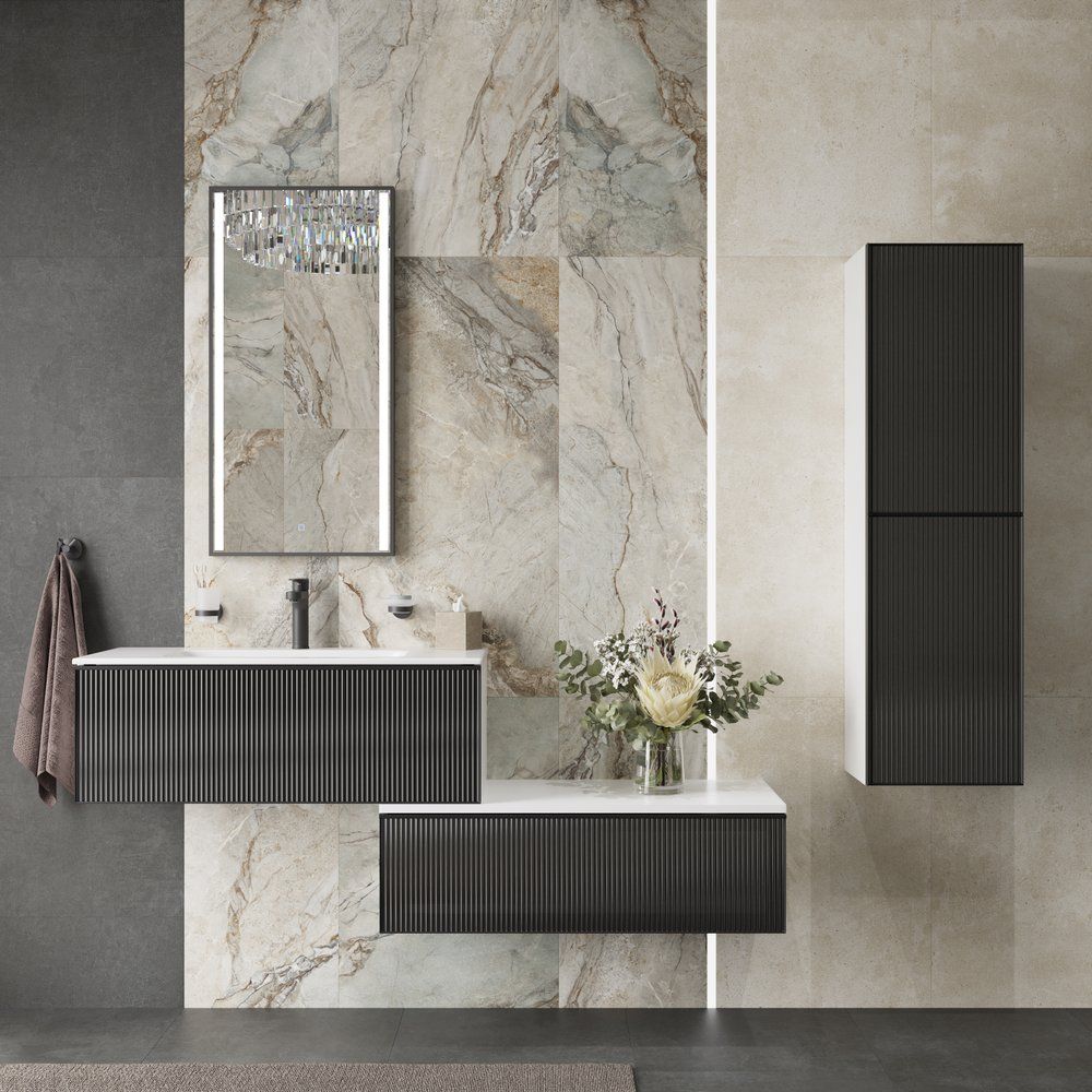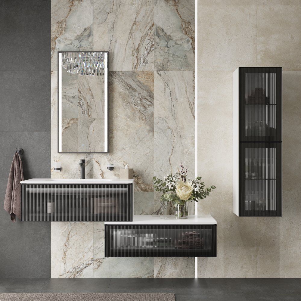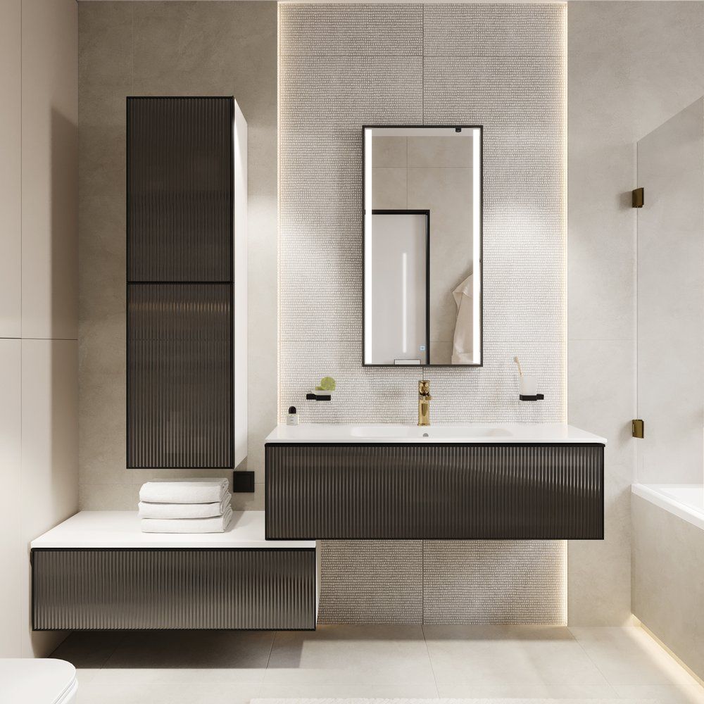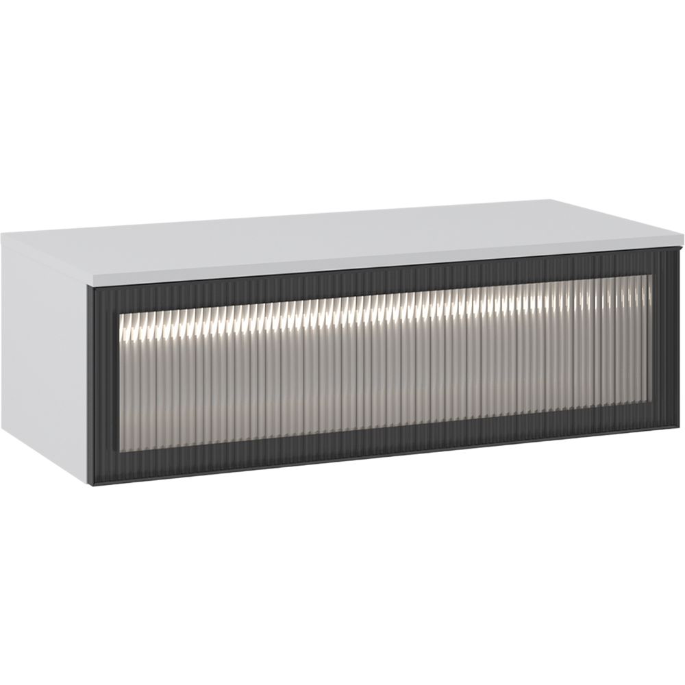 Тумба имеет размеры 101x46x32 см и предназначена для подвесного монтажа, что экономит пространство в помещении. Корпус изготовлен из надежного МДФ и покрыт эмалью, обеспечивающей стойкость к внешним воздействиям. Фасад выполнен из металла и украшен стеклянными элементами для придания дополнительного изыска. Внутри установлены практичные выдвижные ящики с доводчиками для плавного и бесшумного закрывания. Дополнительное удобство обеспечивает встроенная подсветка, позволяющая легко находить нужные вещи.