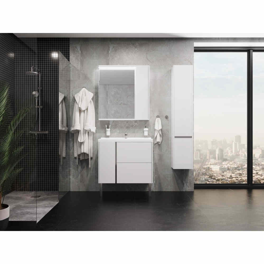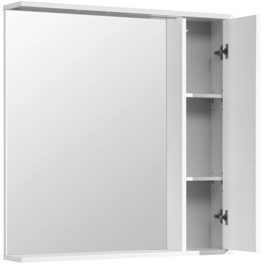 Простой и строгий дизайн сегодня вне конкуренции. Зеркальный шкаф Стоун 80 от AQUATON идеально подойдет для практичных современных ванных комнат в духе минимализма. Корпус модели и фасад выполнены из влагостойкой ЛДСП, покрытой белой глянцевой краской, которая защищает изделие от влаги. Отсек для хранения с двумя полками позволит разместить все необходимые мелочи. Петли с доводчиком делают закрывание дверцы более плавным и безопасным. Шкаф оборудован нижней полкой и верхней LED-подсветкой, которая обеспечит дополнительный комфорт при использовании в ночное время.