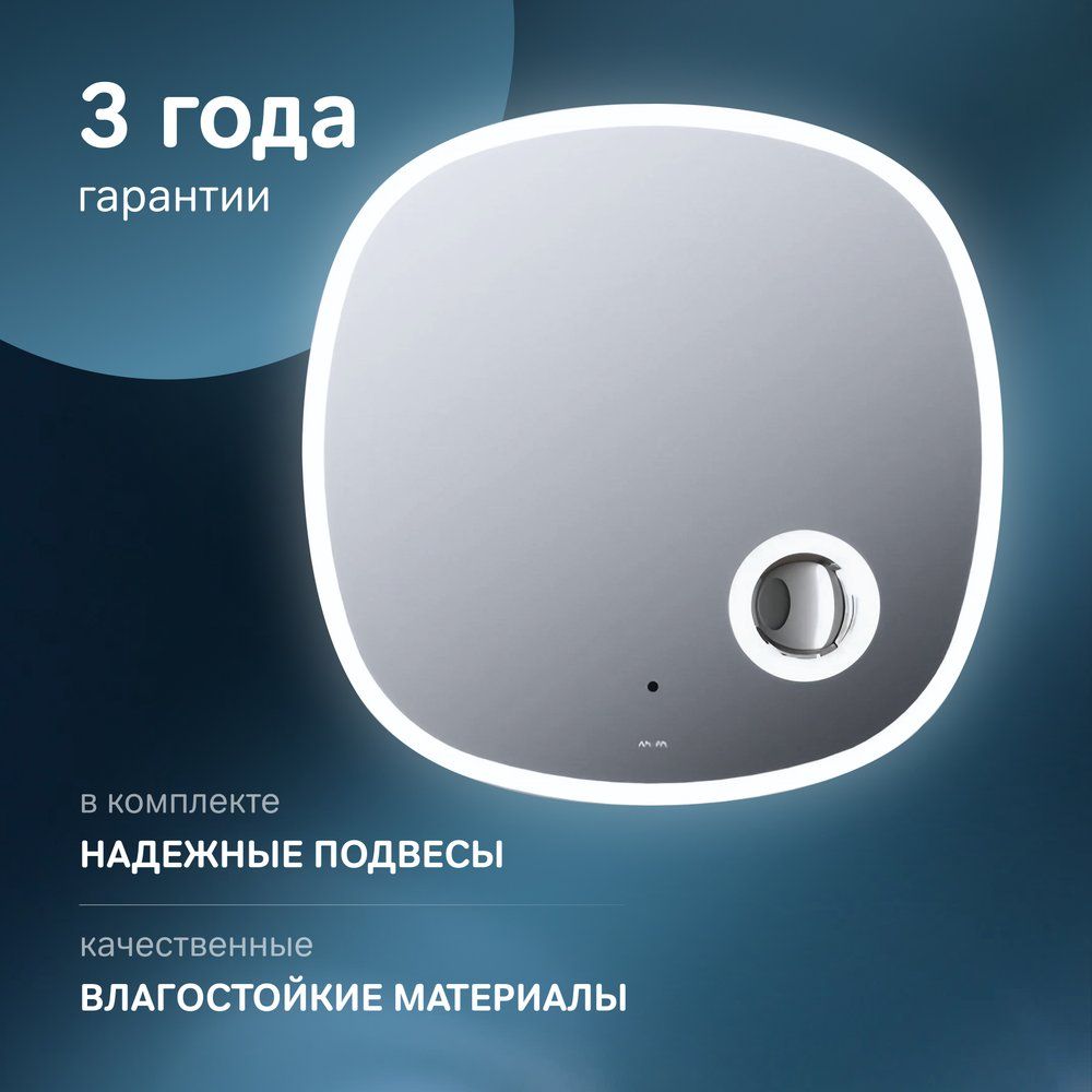 Зеркало обладает размерами 80x3,5x80 см и выполнено из ЛДСП и пластика с ламинированным покрытием, что обеспечивает долговечность и устойчивость к влаге. Технологичная LED-подсветка встроена в изделие и управляется с помощью инфракрасного сенсора. Это подвесное зеркало оснащено регулируемой подсветкой и практичными подвесами, гарантируя простоту установки. Гарантия на изделие составляет три года, что подтверждает его надежность и качество.