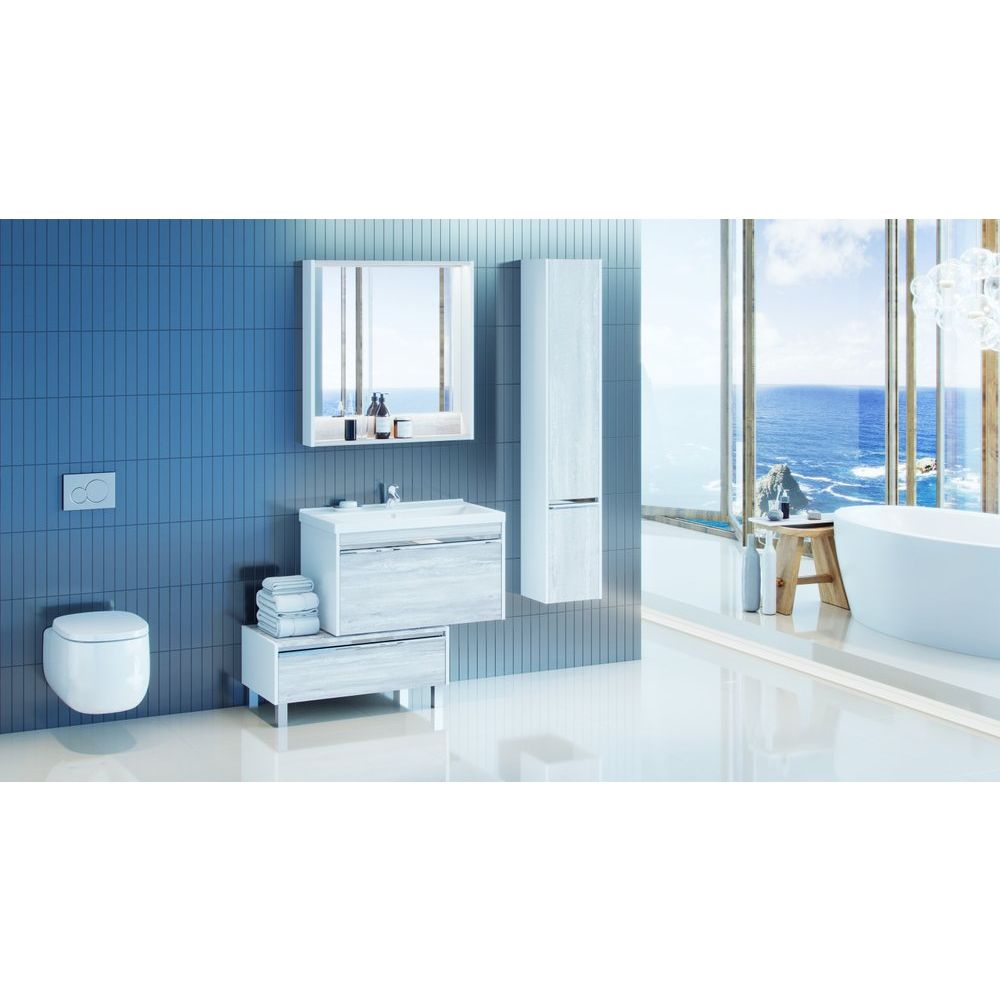 Мебель поставляется в собранном виде, что существенно упрощает процесс установки. Не забудьте убедиться в наличии подходящей площади для размещения зеркала с учетом его размеров — 80 на 85 см. Подключение подсветки требует предварительной подготовки электропроводки, так как в комплекте нет выключателя.