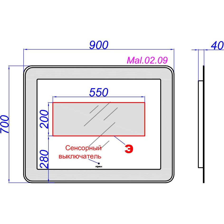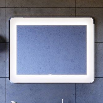 Это подвесное зеркало имеет габариты 90x4x70 см, что оптимально подходит для установки над раковиной шириной 80–90 см. Корпус выполнен из прочного алюминия, который защищает изделие от коррозии. Полотно оснащено светодиодной подсветкой, управляемой легким касанием сенсорной кнопки. Подвесные элементы упрощают процесс монтажа. Производство осуществляется в России, а гарантия качества составляет 2 года.