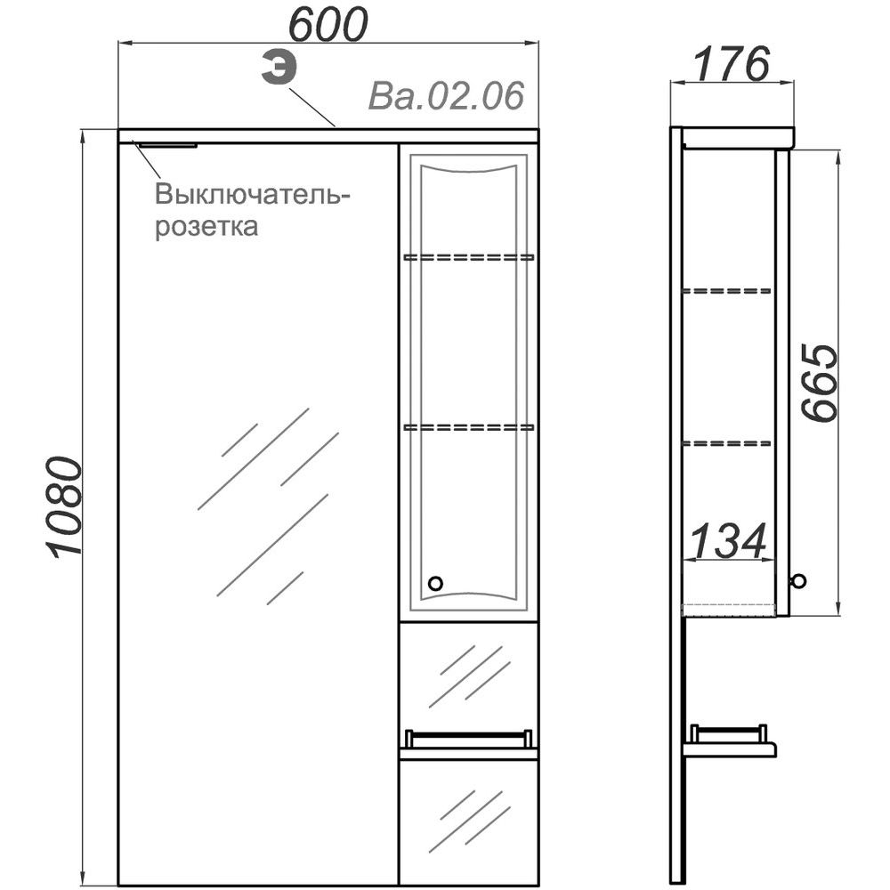Зеркало-шкаф шириной 60 см, глубиной 20 см и высотой 108 см легко расположится над умывальником стандартных размеров. Корпус изделия выполнен из высококачественного ДСП с эмалевым покрытием, устойчивым к внешним воздействиям. Фасадные элементы изготовлены из МДФ, также покрытых эмалью. В комплект входит механическая кнопка для управления подсветкой, хромированная фурнитура и встроенная розетка. Подвесное крепление на подвесах обеспечивает лёгкость установки. Гарантия на изделие составляет 2 года.