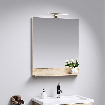 Зеркало Aqwella Foster 70 в стильной отделке «дуб сонома» идеально впишется в современный скандинавский интерьер вашей ванной комнаты. Конструкция сочетает в себе элегантный дизайн и функциональность, что делает его отличным выбором для зоны умывания. Отличительной чертой этой модели является навесной светильник, обеспечивающий дополнительное освещение, а удобная полочка предотвращает попадание брызг на зеркальную поверхность. Благодаря использованию серебряной амальгамы, зеркало обеспечивает кристалльно чистое отражение без искажения. Материалы, из которых изготовлено изделие, устойчивы к воздействию влаги, что продлевает срок его службы.