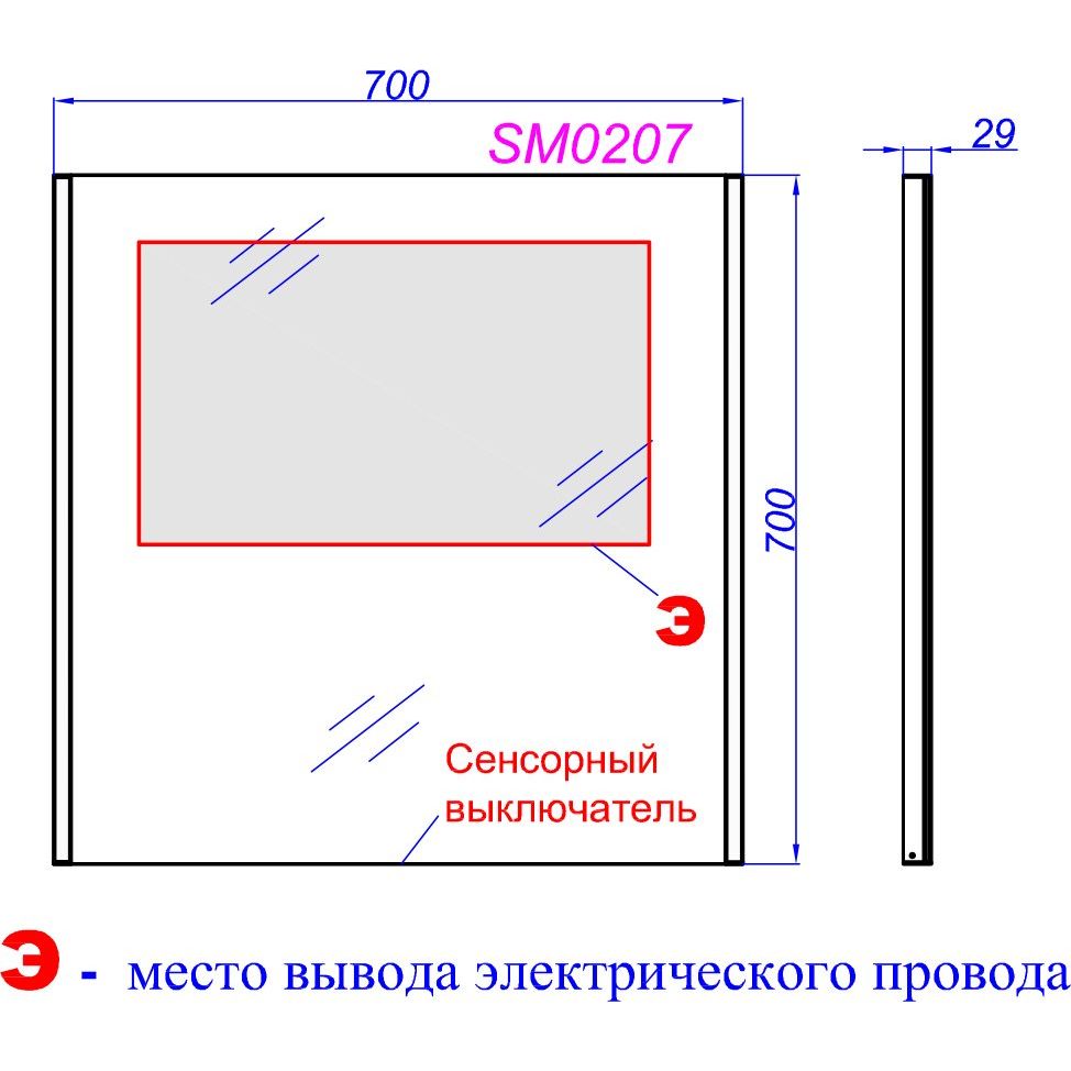 Зеркало Aqwella SM 0207 с подсветкой имеет размеры 70x2,9x70 см и выполнено в подвесном формате. Корпус изготовлен из прочного алюминия, что обеспечивает длительный срок службы. Подсветка встроена непосредственно в полотно, а управление ею осуществляется с помощью инфракрасного датчика. Двухгодичная гарантия от российского производителя Aqwella — это ваш дополнительный бонус при покупке.