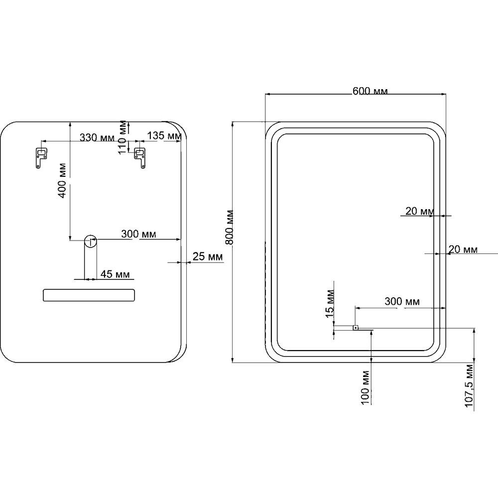 Габариты зеркала - 60 см в ширину, 3 см в глубину и 80 см в высоту, что делает его идеальным для большинства ванных комнат. Корпус изготовлен из высококачественного МДФ и покрыт пленкой для дополнительной защиты. Подсветка интегрирована в полотно зеркала, а управляется она легким касанием сенсорной кнопки. Для удобства установки предусмотрены подвесы. Зеркало поставляется с гарантией 1 год, произведено в России и имеет подвесное крепление.