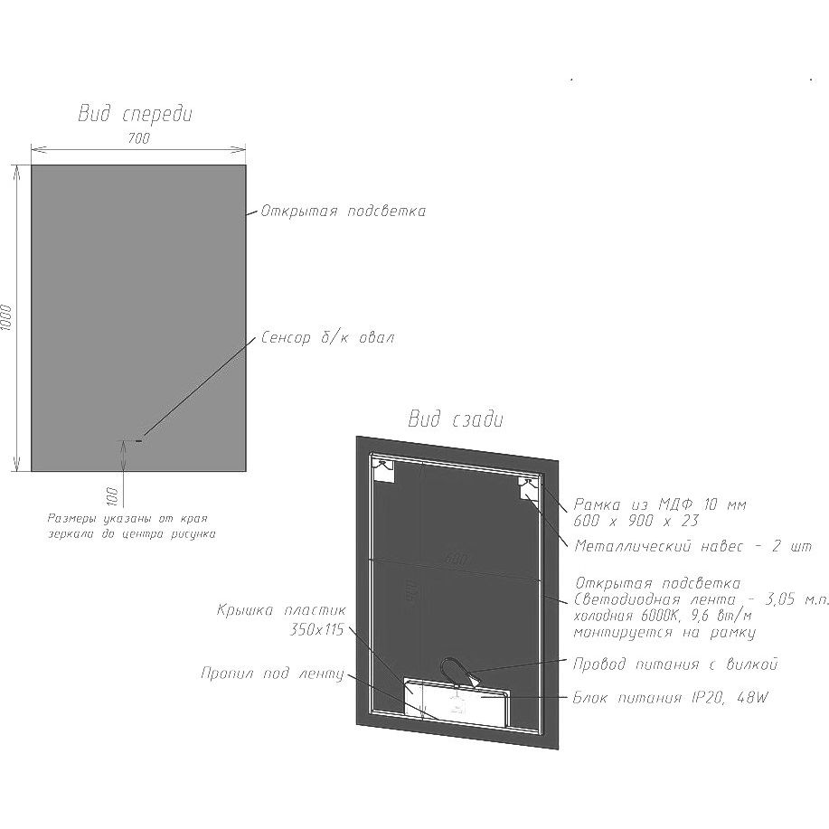 Зеркало имеет габариты 70x3x100 см и выполнено из прочного пластика. Подсветка элегантно расположена за зеркальным полотном, придавая ему эффектный вид и обеспечивая равномерное освещение. Умный инфракрасный выключатель заботится об удобстве, а встроенные подвесы облегчают установку. Гарантия на изделие составляет 1 год, что подтверждает его надежность и качество.
