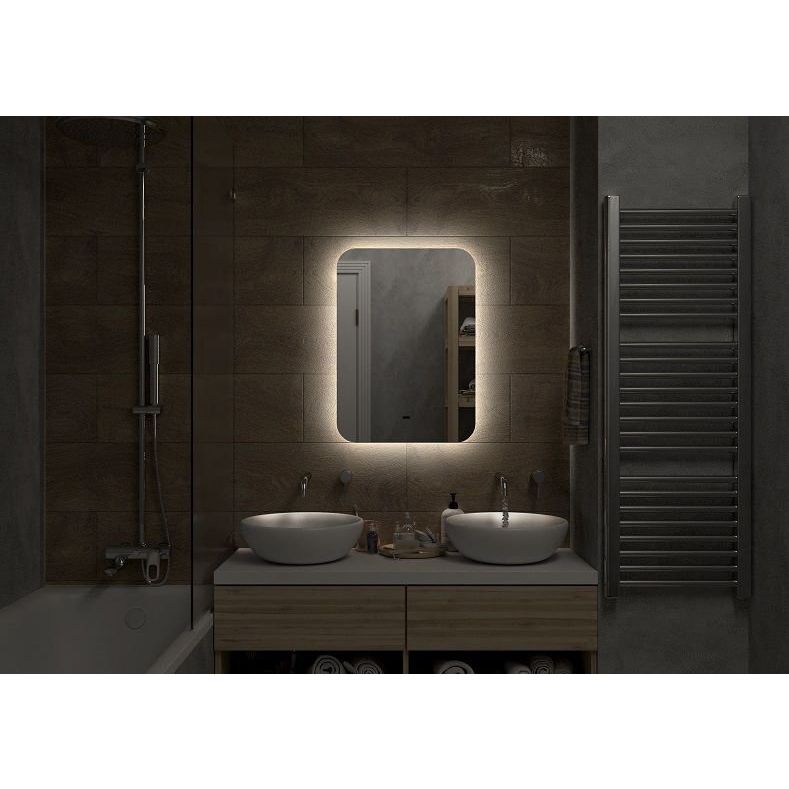 Зеркало Art&Max Ravenna 50 станет настоящей находкой для ценителей современного стиля и функциональности в интерьере ванной комнаты. Это зеркало оснащено светодиодной LED подсветкой, которая создает эффект ореольного свечения на стене, создавая атмосферу уюта и комфорта. Благодаря встроенному диммеру, вы сможете легко отрегулировать интенсивность \"холодного\" свечения, чтобы оно максимально соответствовало вашим предпочтениям. Питание от сети 220В осуществляется через блок питания постоянного напряжения, обеспечивая стабильную и безопасную работу светильника.