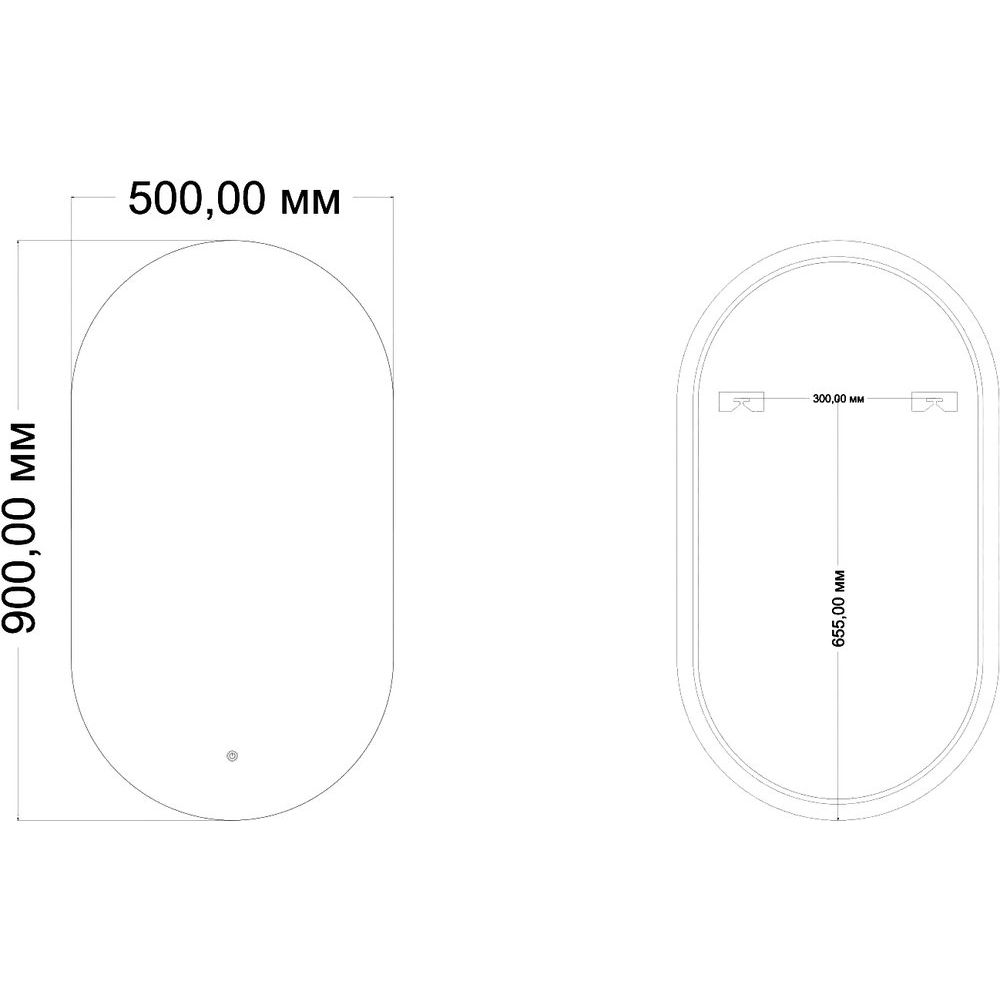 Зеркало имеет размеры 50x4x90 см и выполнено в прочном пластиковом корпусе. Оно оснащено подсветкой, которая находится за стеклом, создавая мягкий световой эффект. Работа светильника осуществляется от сети 220В через блок питания постоянного напряжения. Модель также оснащена подвесами, что облегчает монтаж.