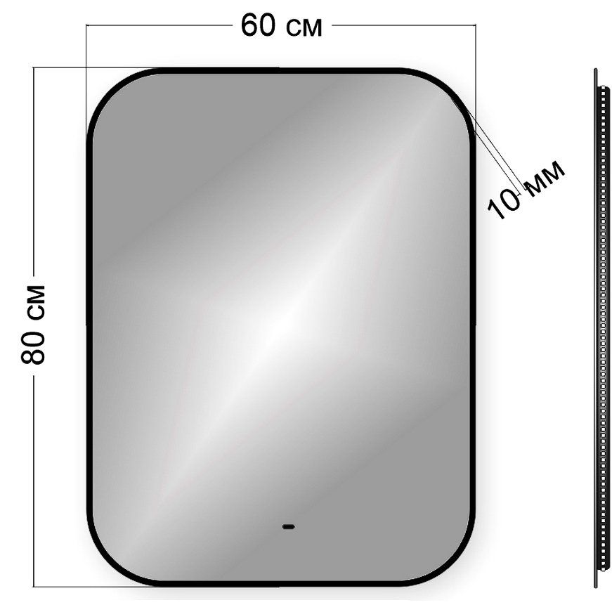 Зеркало Bauedge Black Rand 60х80 имеет габариты 60x1x80 см и выполнено из УПС-пластика. Светодиодная лента мощностью 9,6 Вт/м гарантирует ресурс работы до 50 000 часов. Имеется влагозащита класса IP67, благодаря чему продукт можно устанавливать в любых помещениях ванной. Подсветка встроена за зеркальным полотном и управляется сенсорной кнопкой. Дополнительное удобство - регулировка яркости, которая предоставляет различные оттенки освещения.