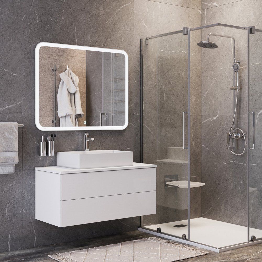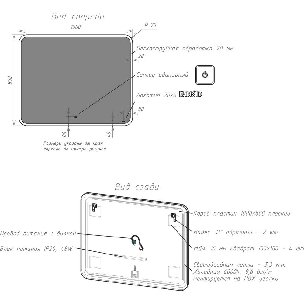 Зеркальное полотно изготовлено из премиального влагостойкого материала AGC толщиной 4 мм, соответствующего высоким европейским стандартам. Это подвесное зеркало имеет размеры 100x3x80 см и окантовано пластиковым корпусом, который защищает его от влаги и повреждений. Управляется легким прикосновением к сенсорной кнопке, предлагая регулируемую подсветку для настроения вашего пространства. Гарантия на изделие составляет 1 год.